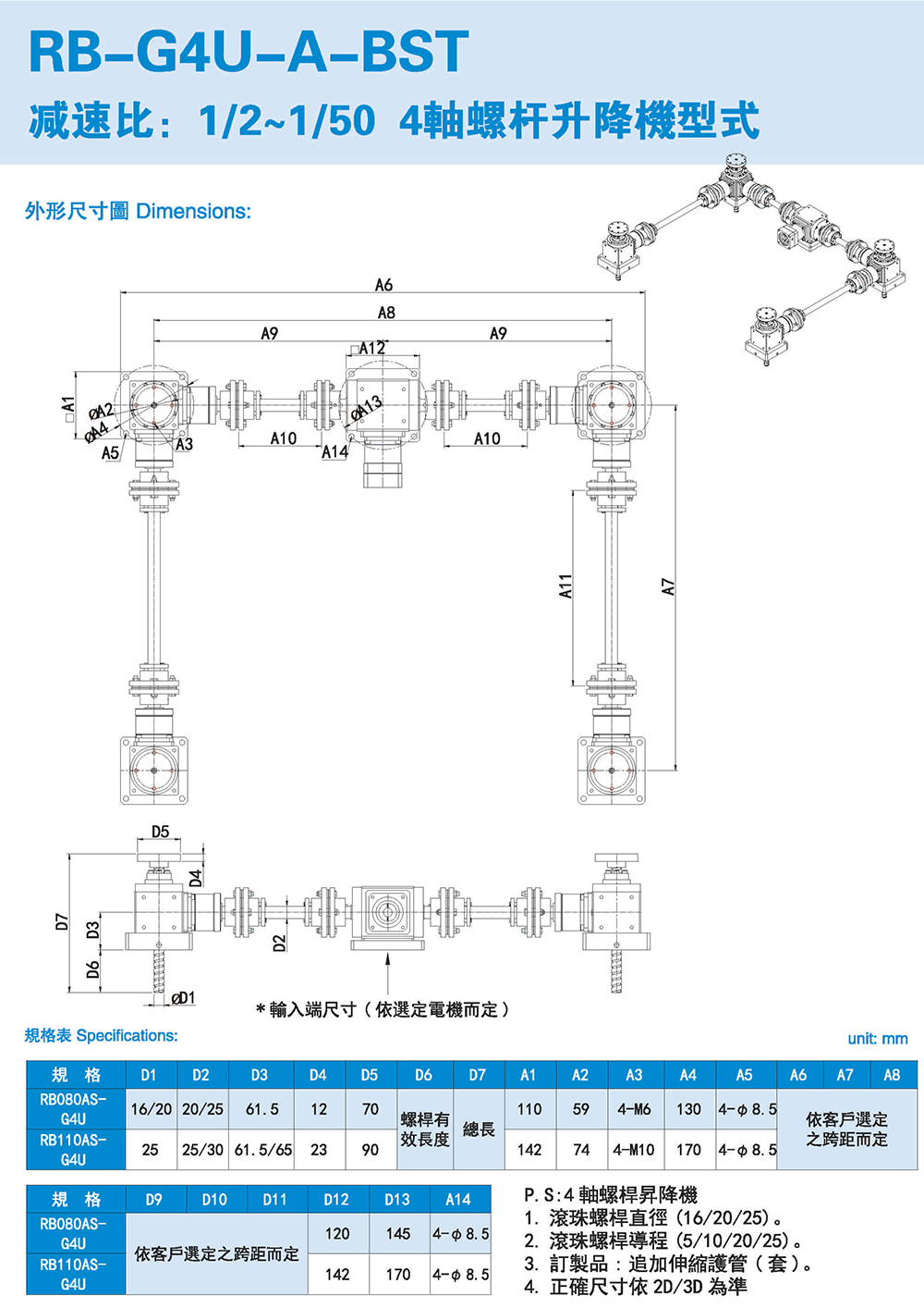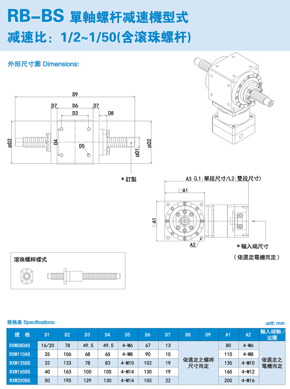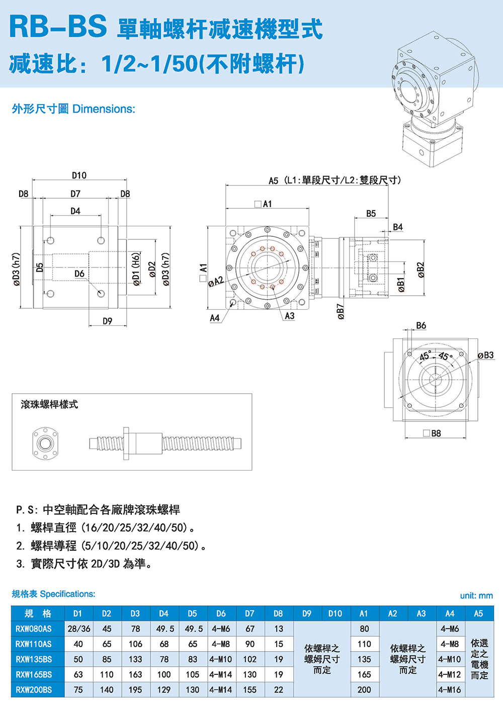 多样化:输出轴种类多样化,有单出力轴型、双出力轴型、中空轴型、中空法兰型、中空轴锥形紧迫性、螺杆直线型、螺牙直线型。