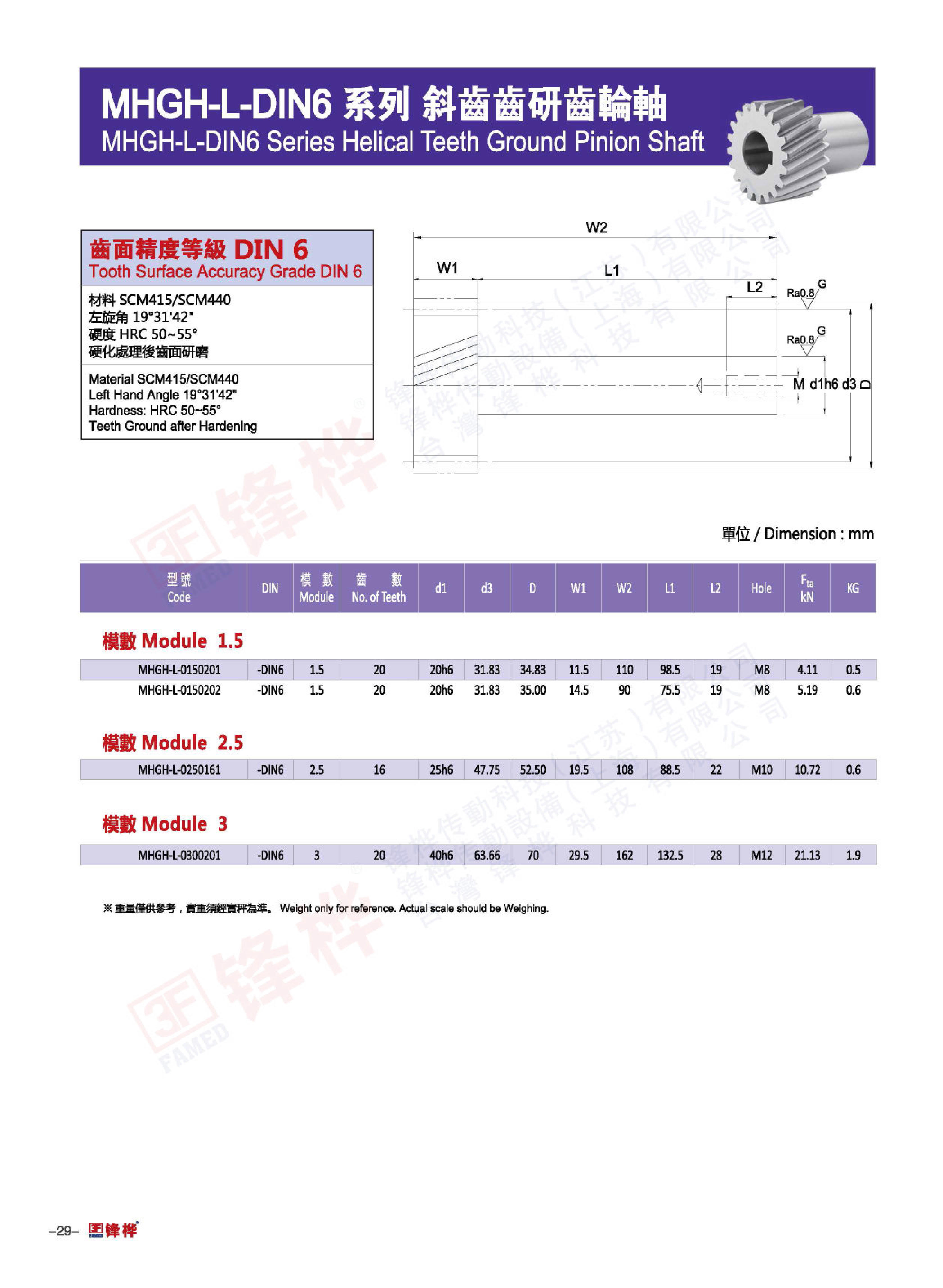 MHGH-L-DIN6系列 斜齿齿研齿轮轴(P29)