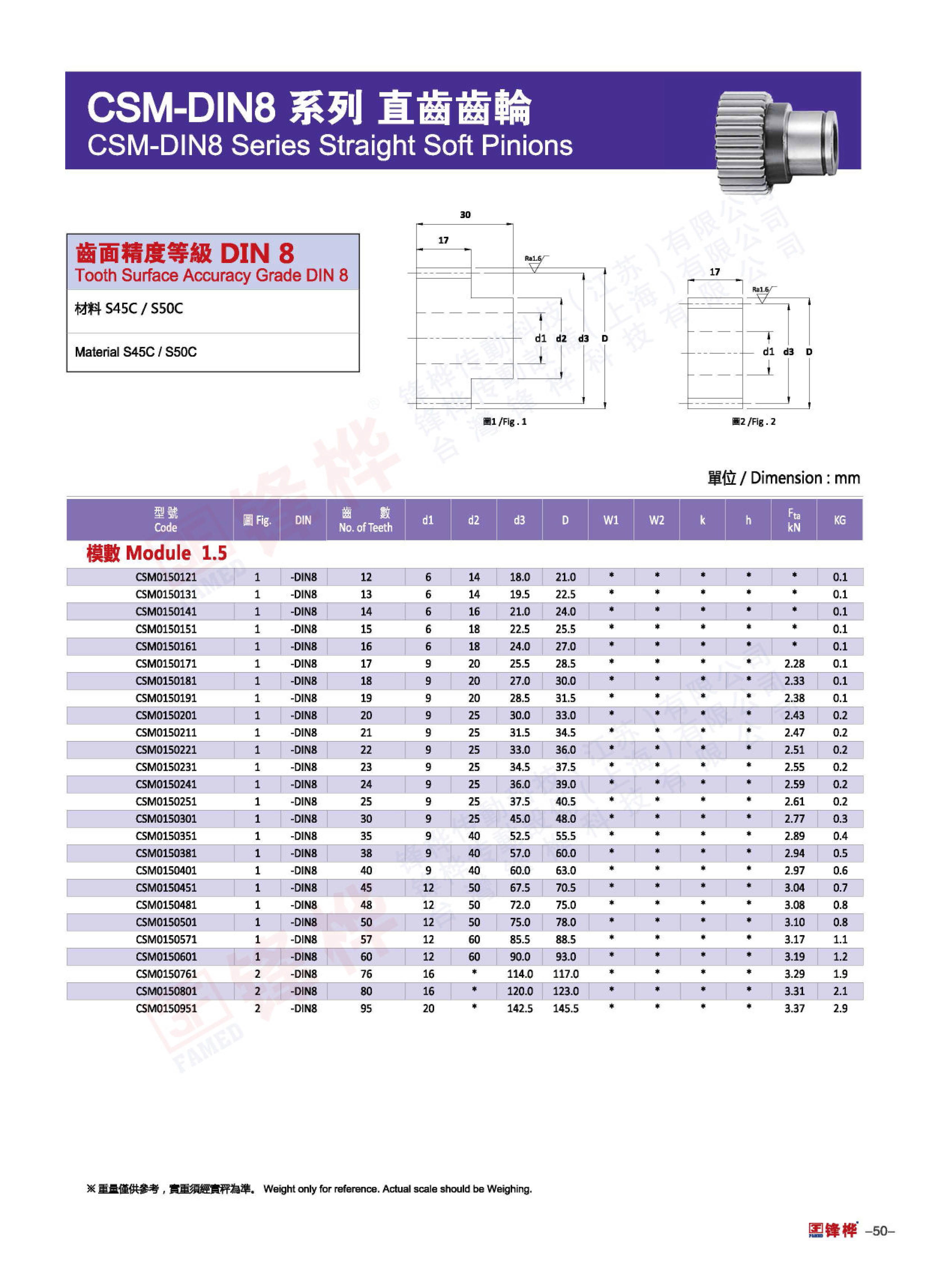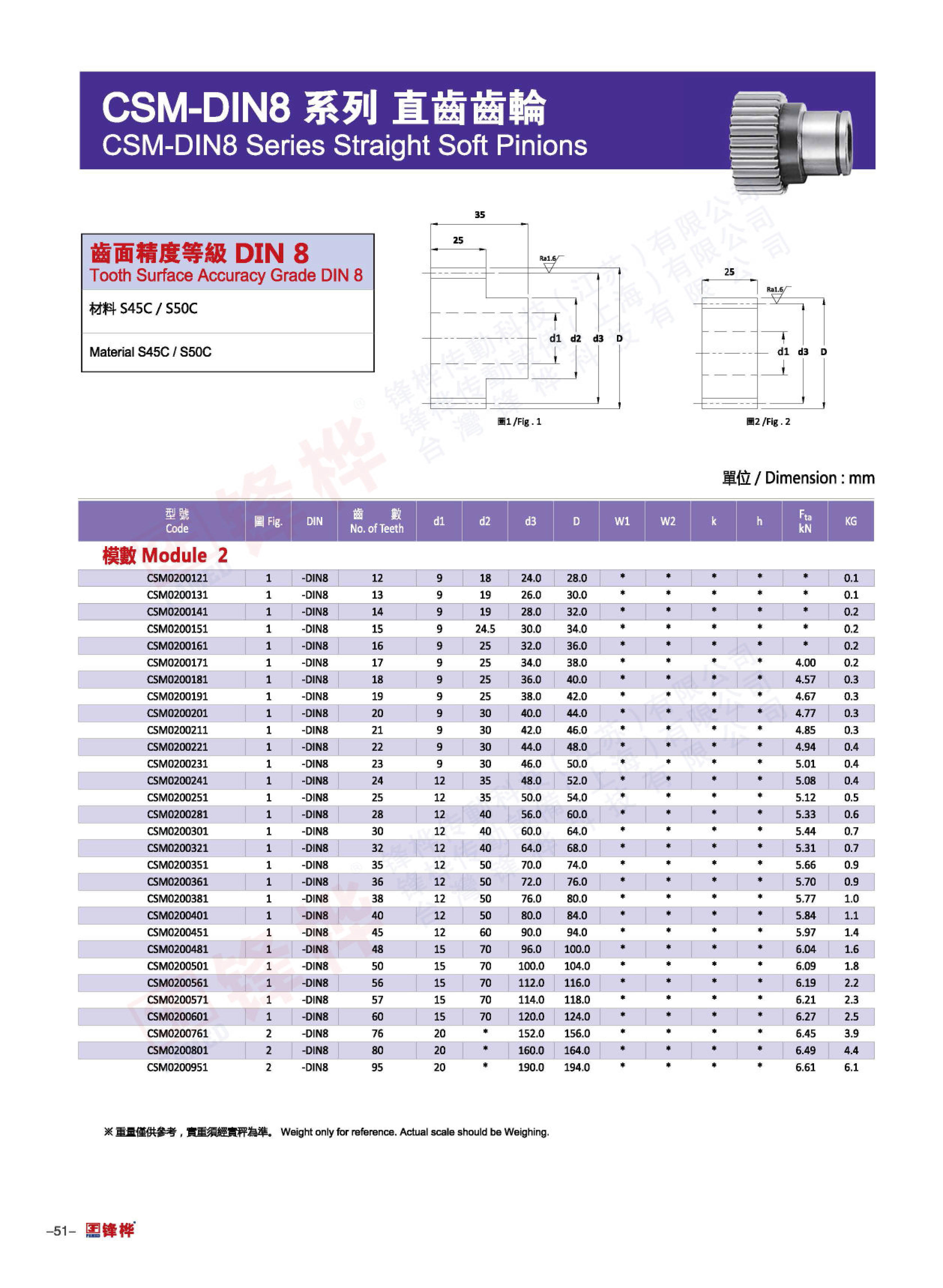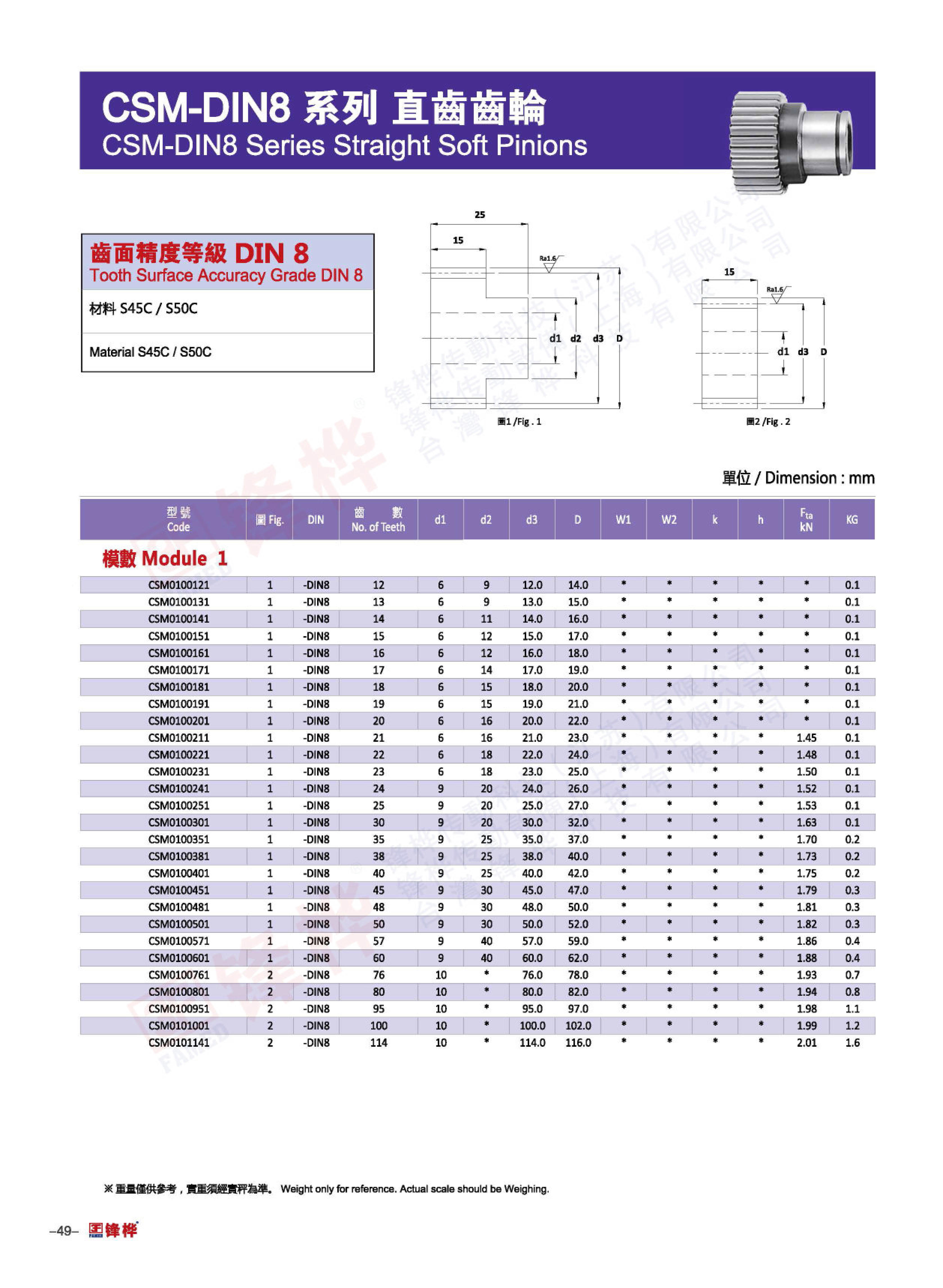 CSM-DIN8系列 直齿齿轮(P49-57)