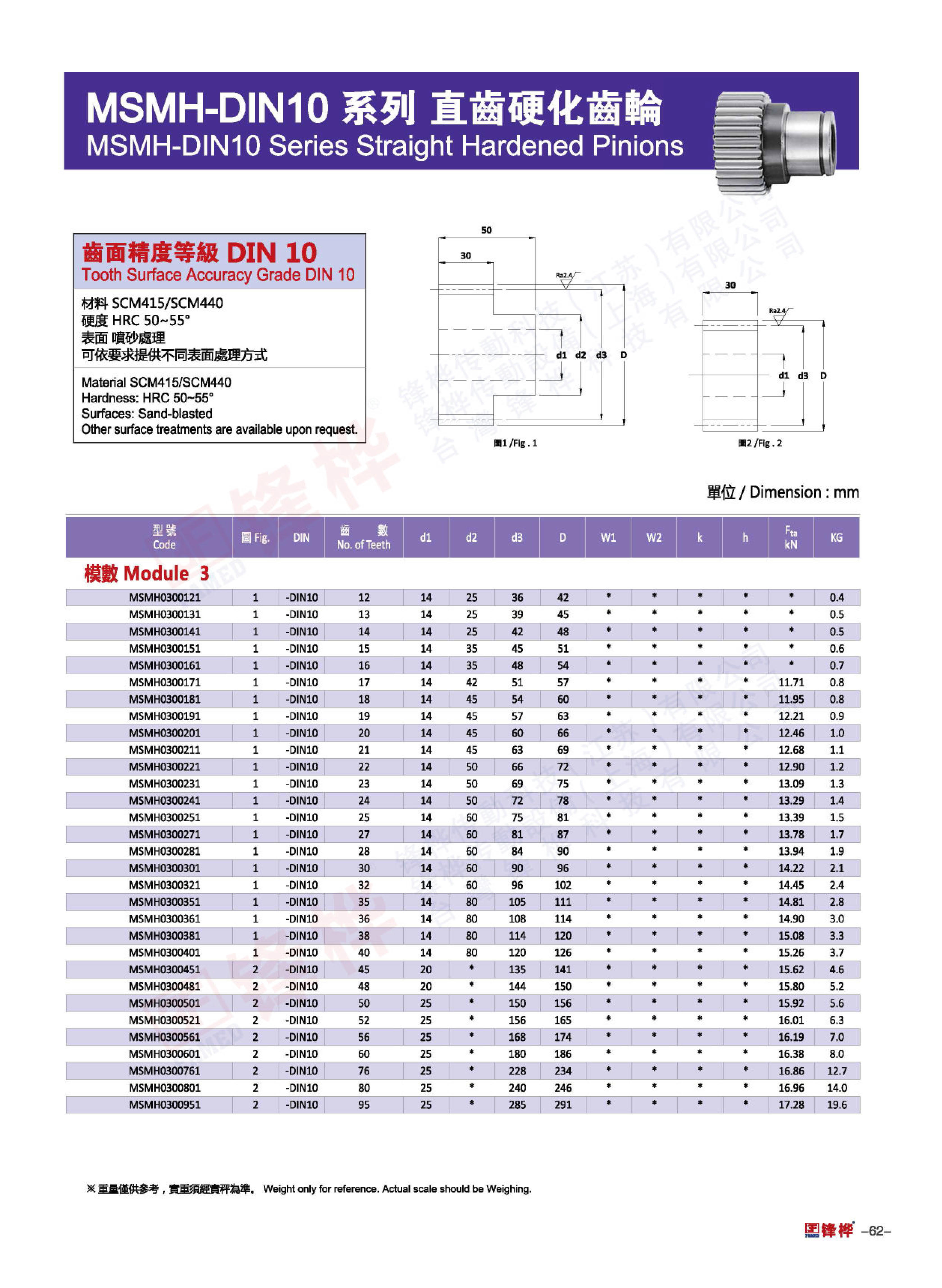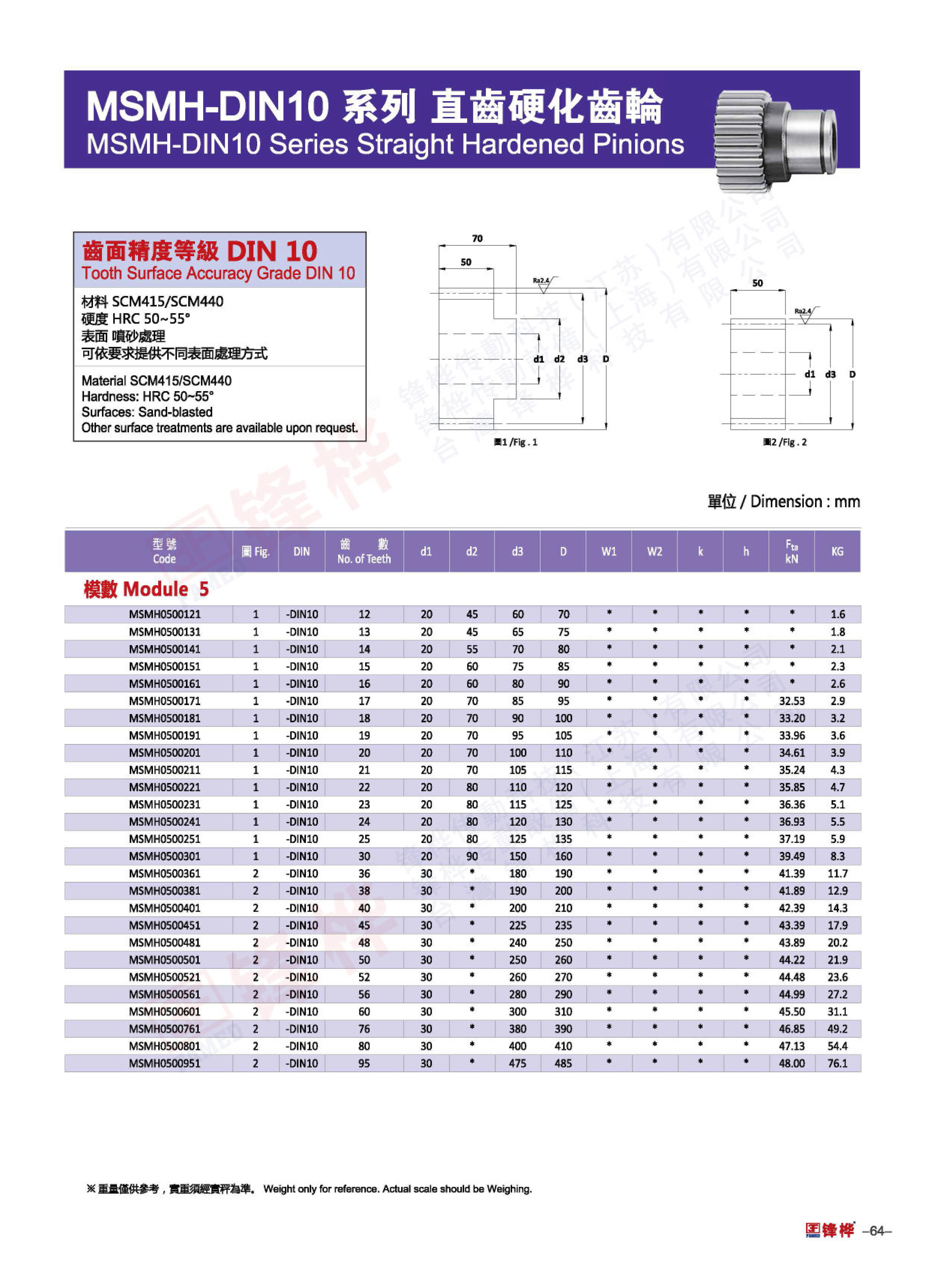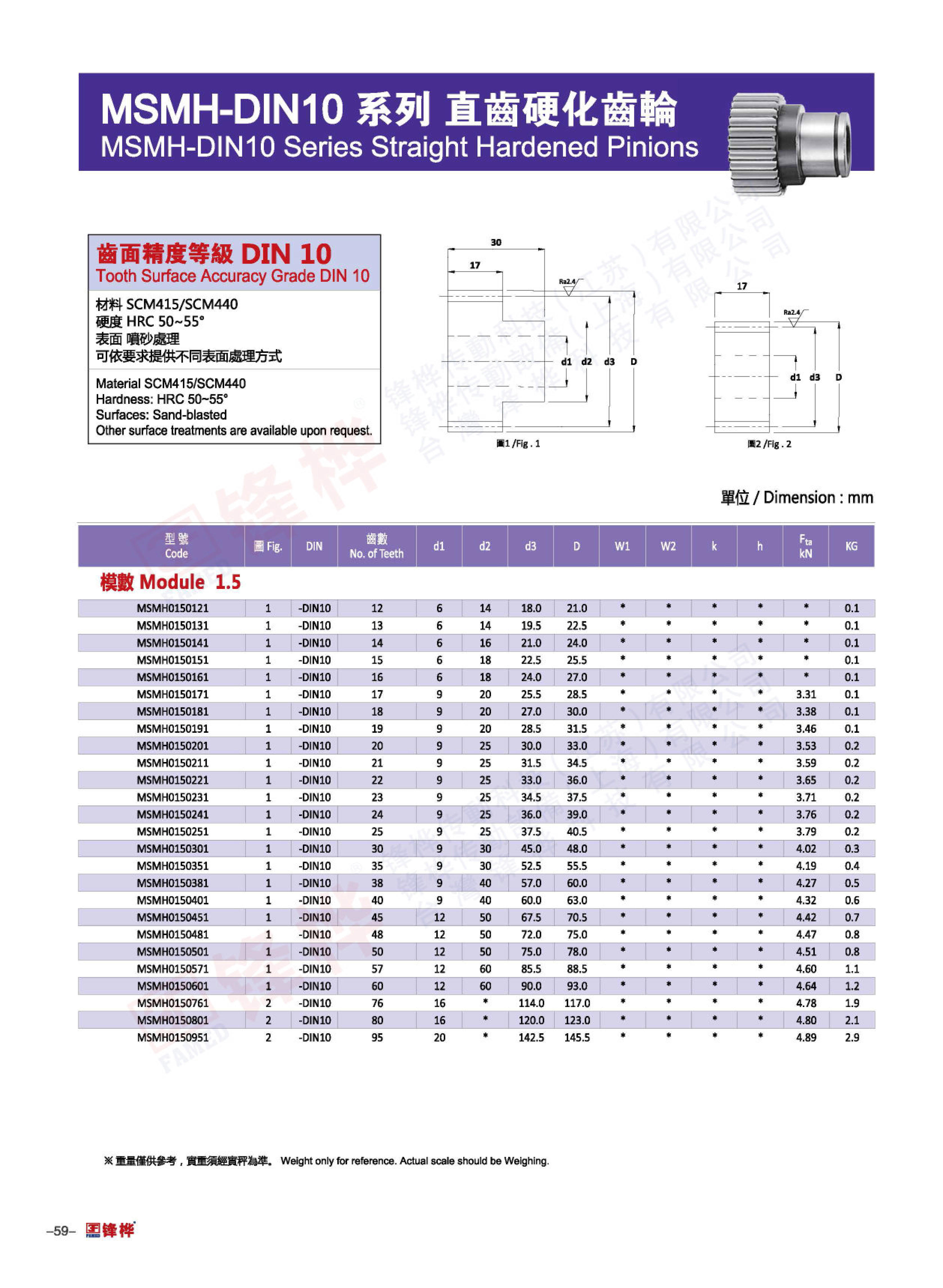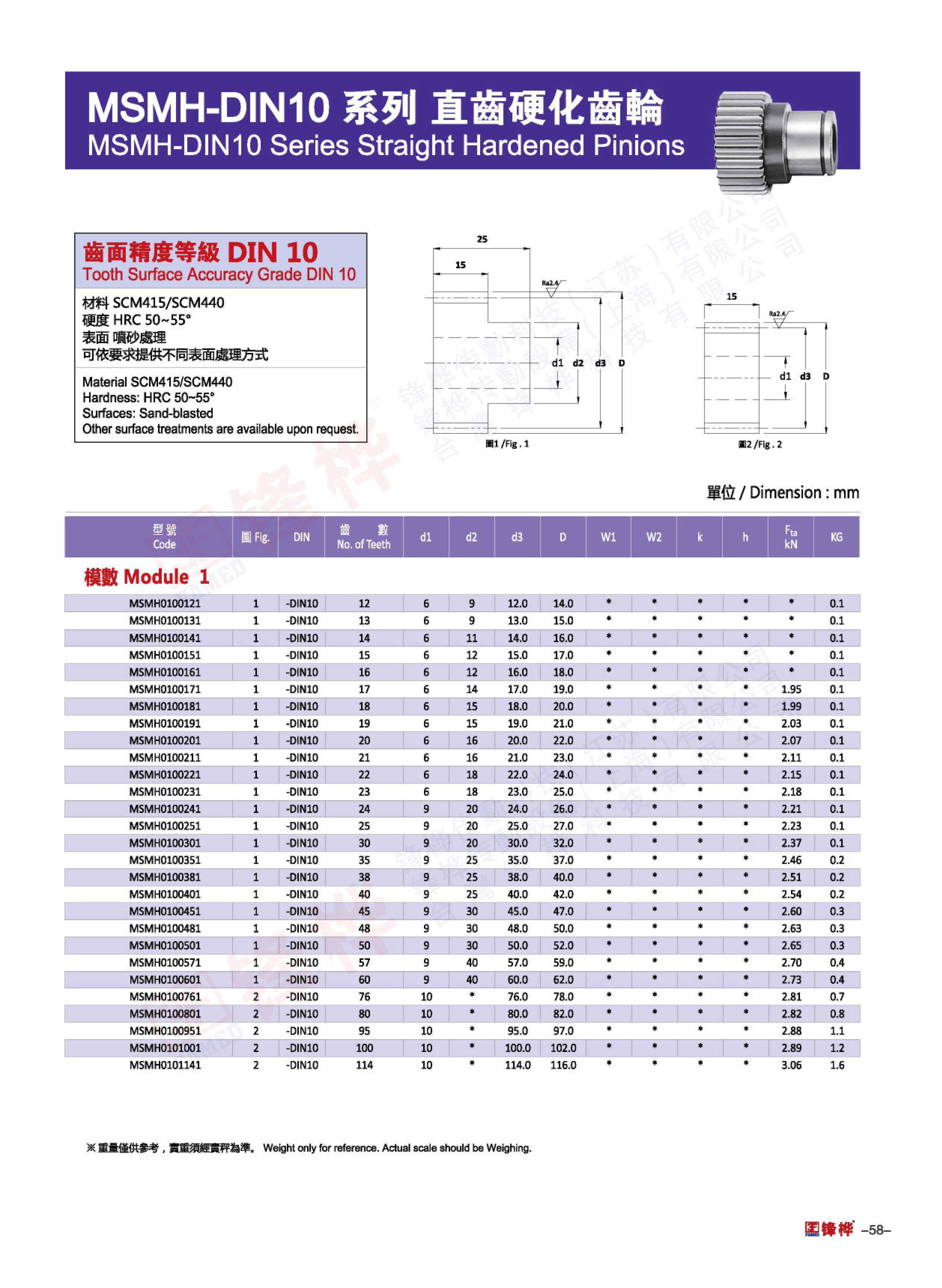 MSMH-DIN10系列 直齿硬化齿轮(P58-66)