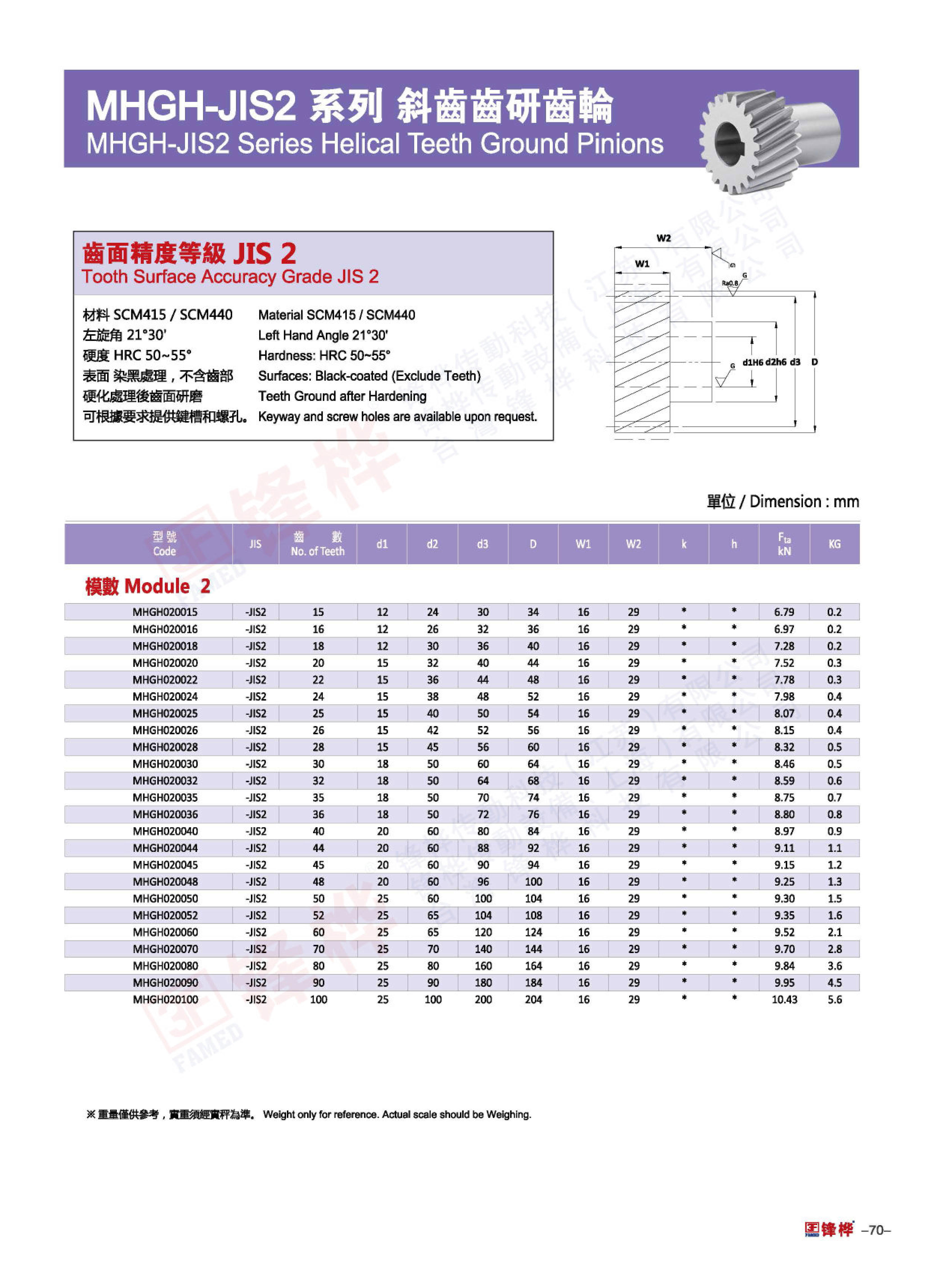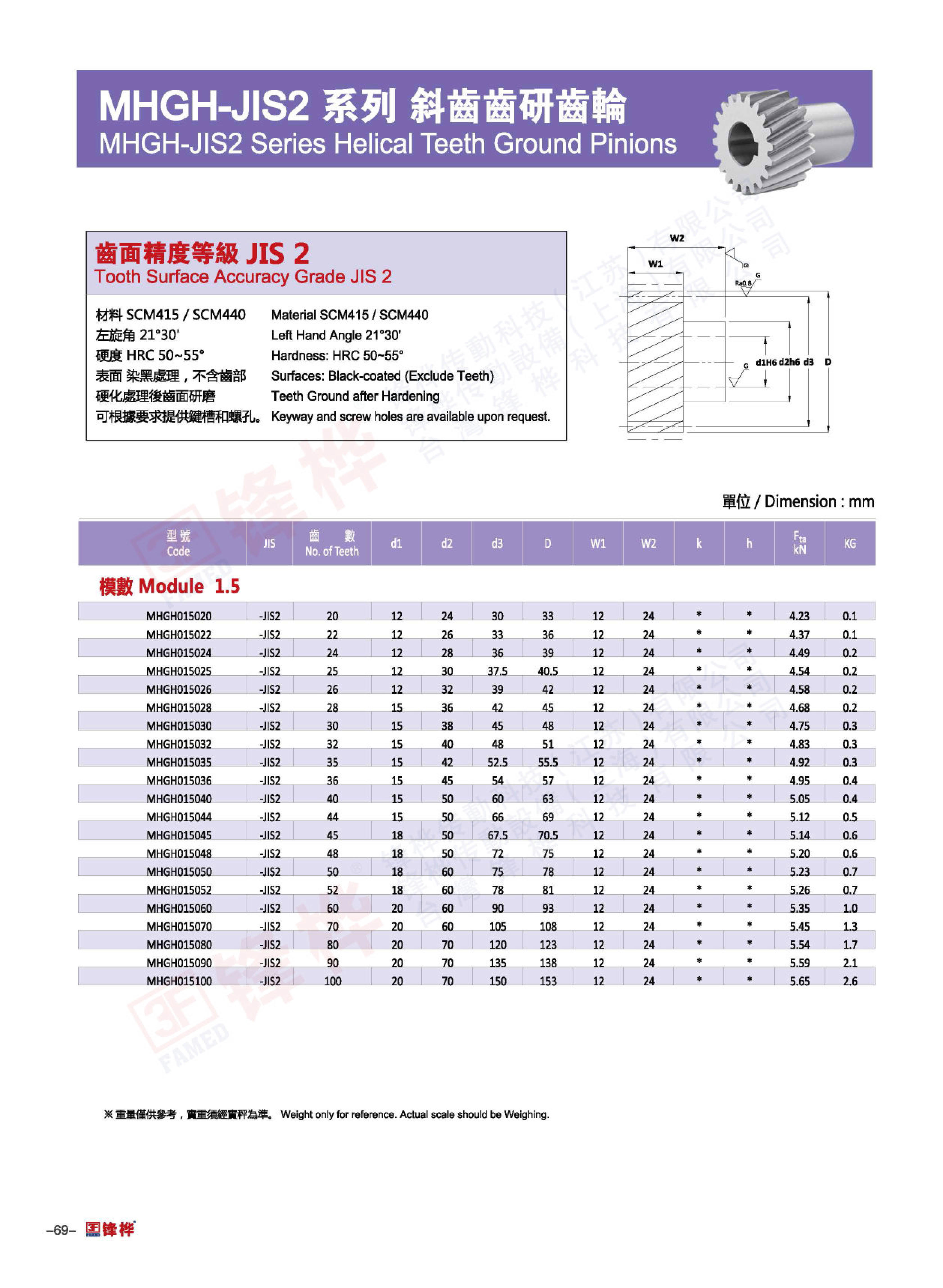 MHGH-JIS2系列 斜齿齿研齿轮(P68-72)