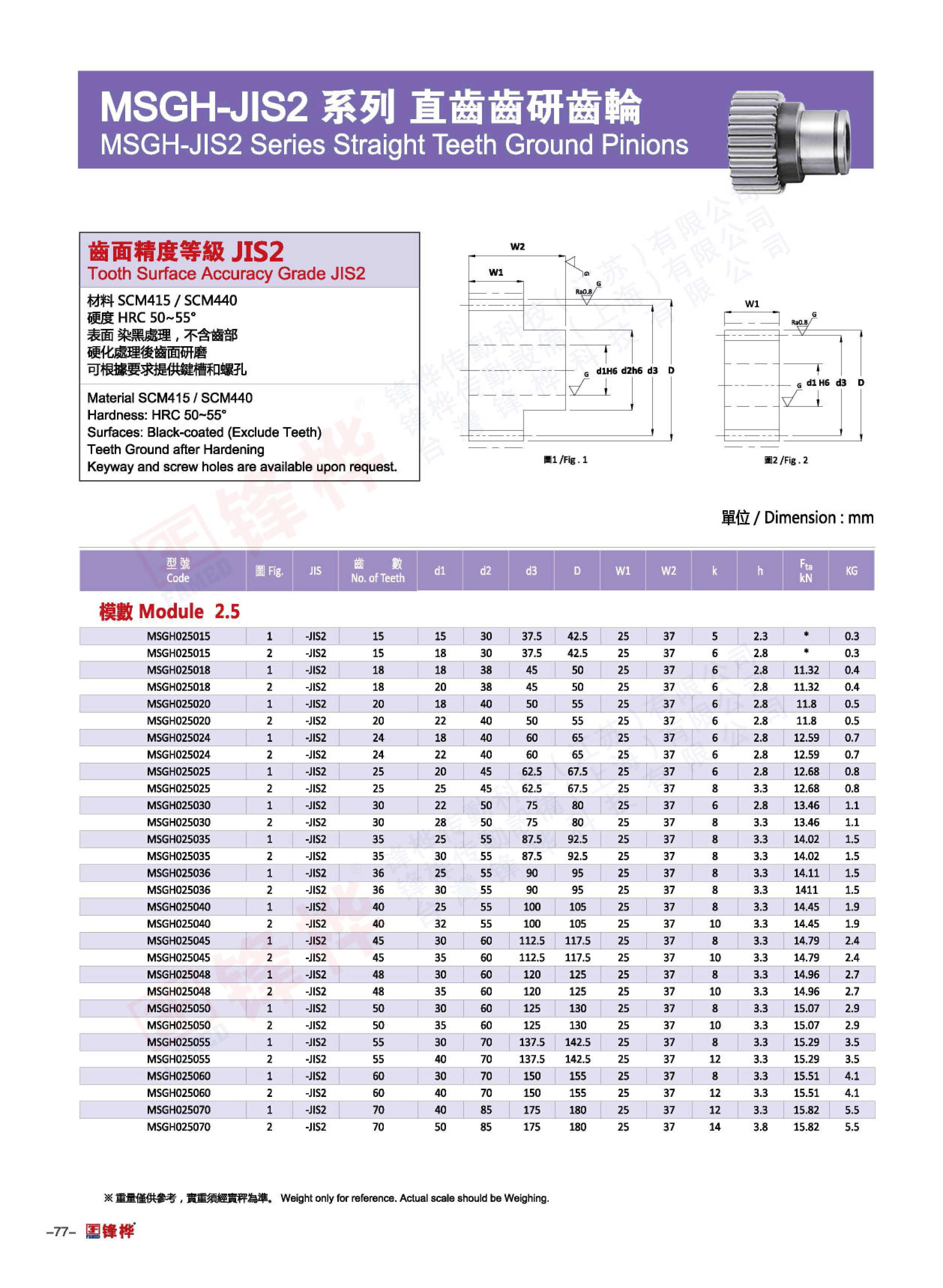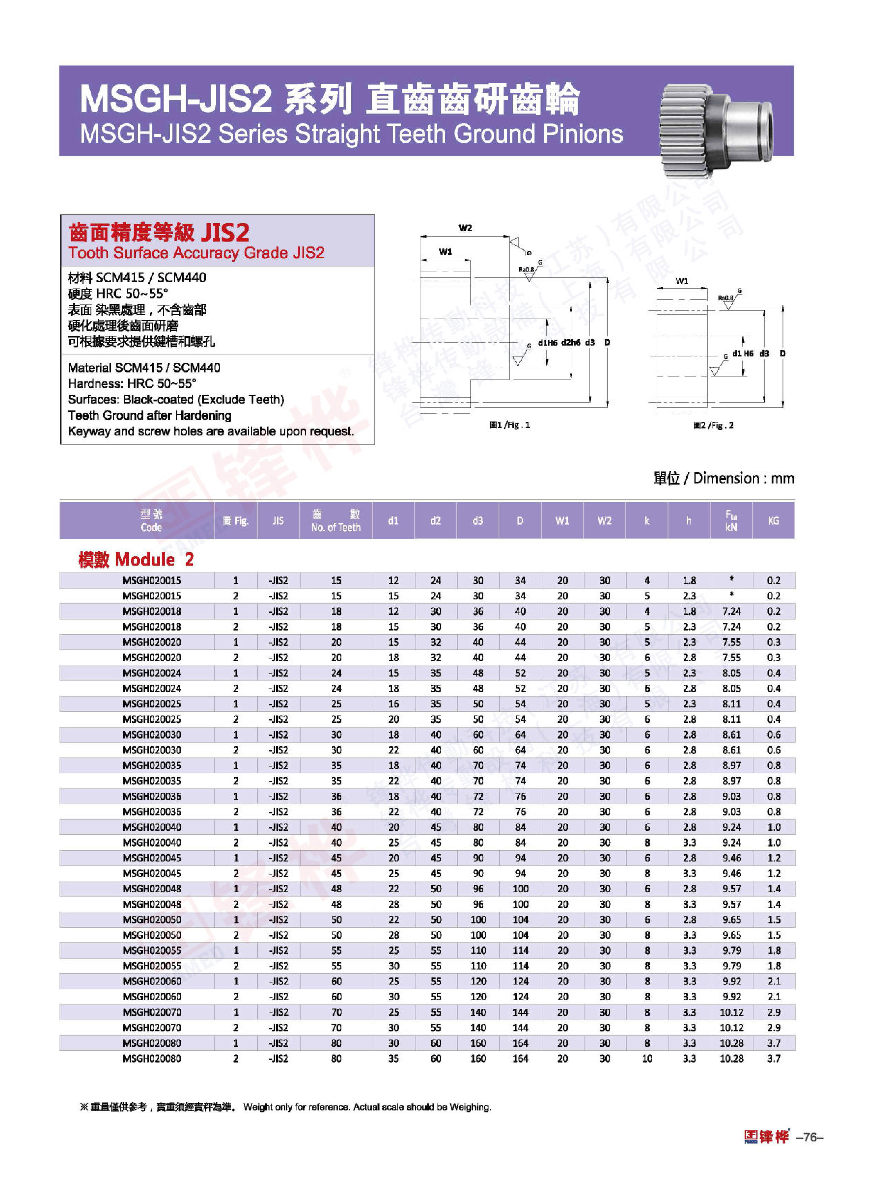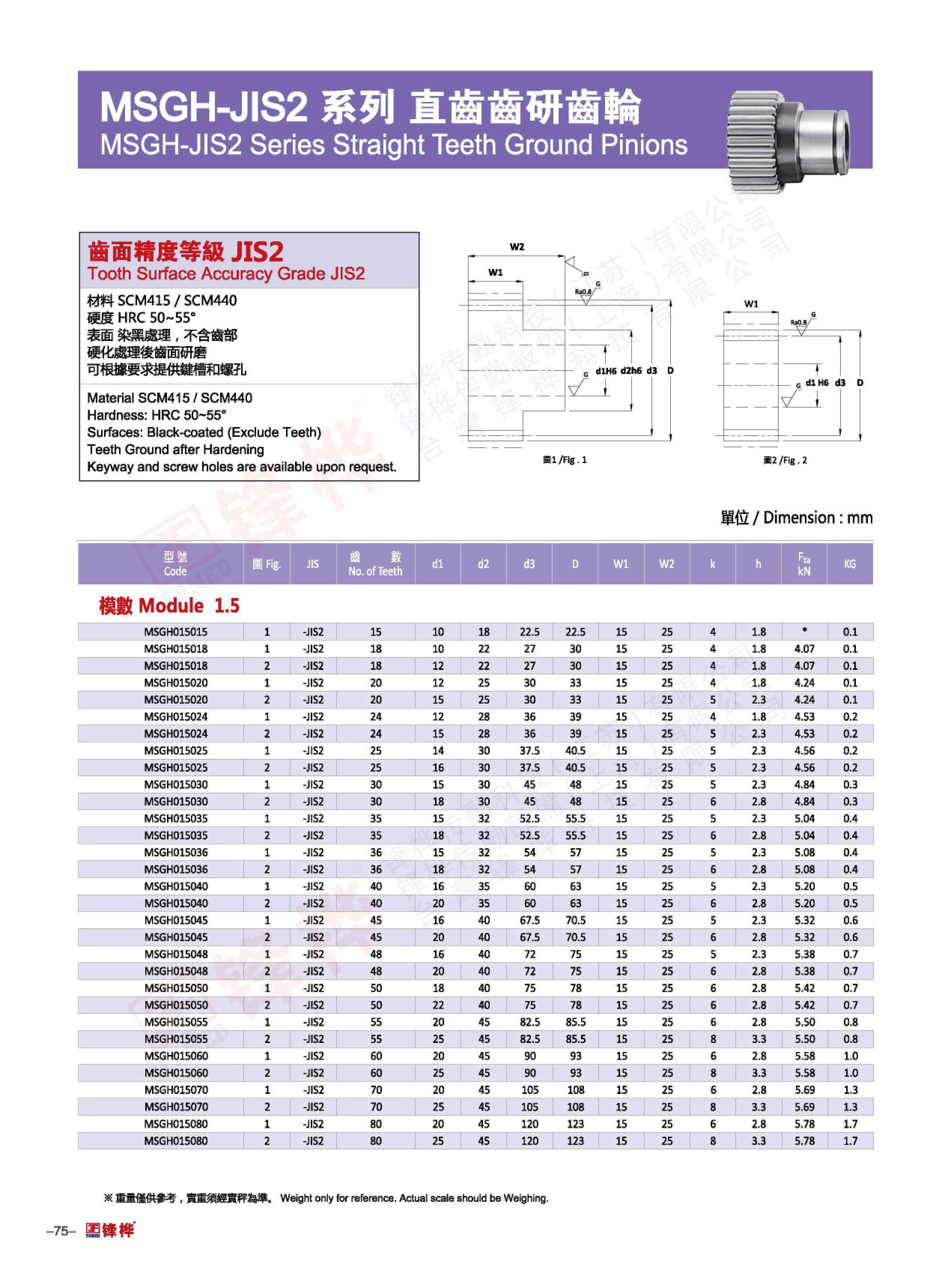 MSGH-JIS2系列 直齿齿研齿轮(P74-79)