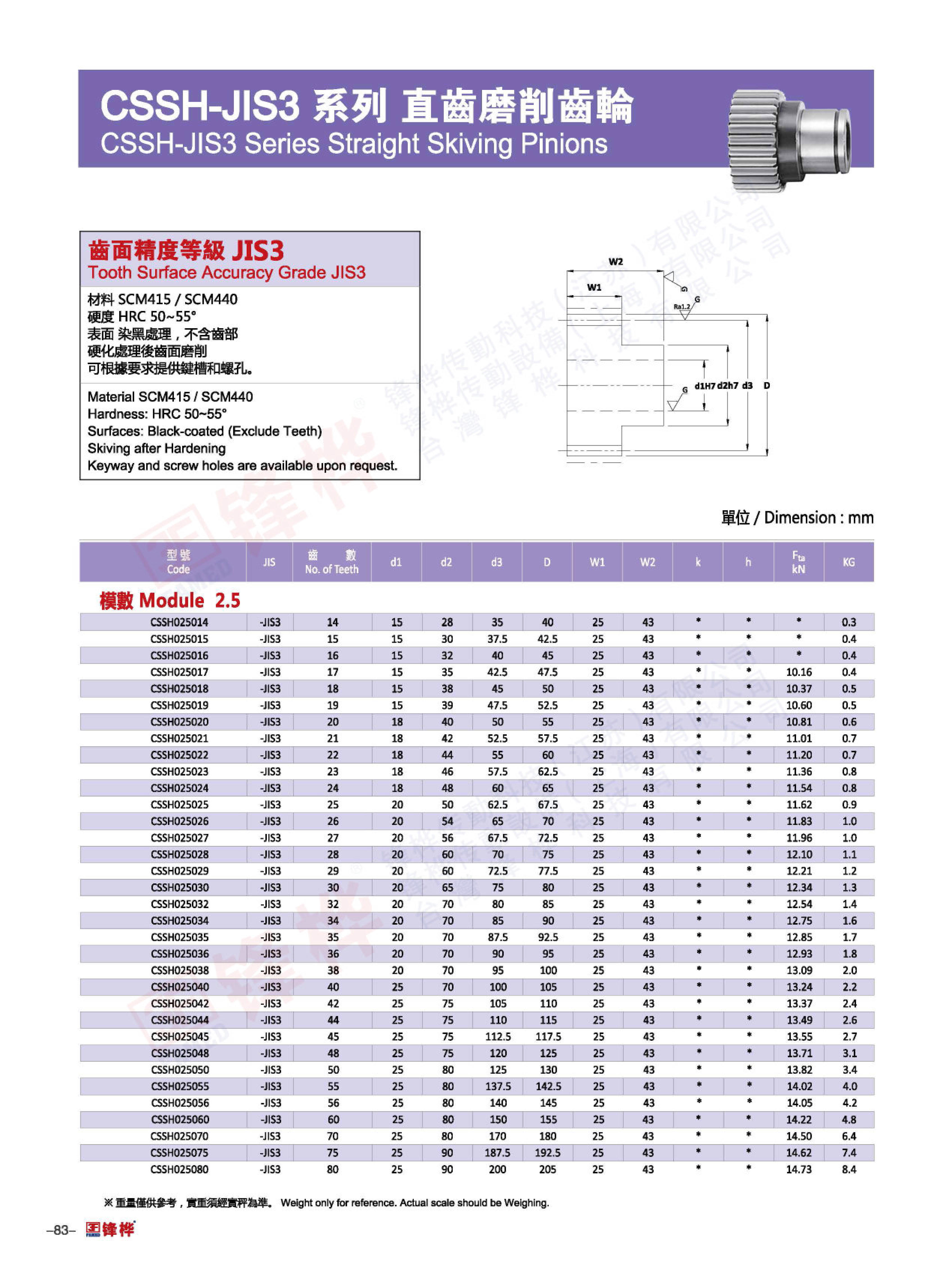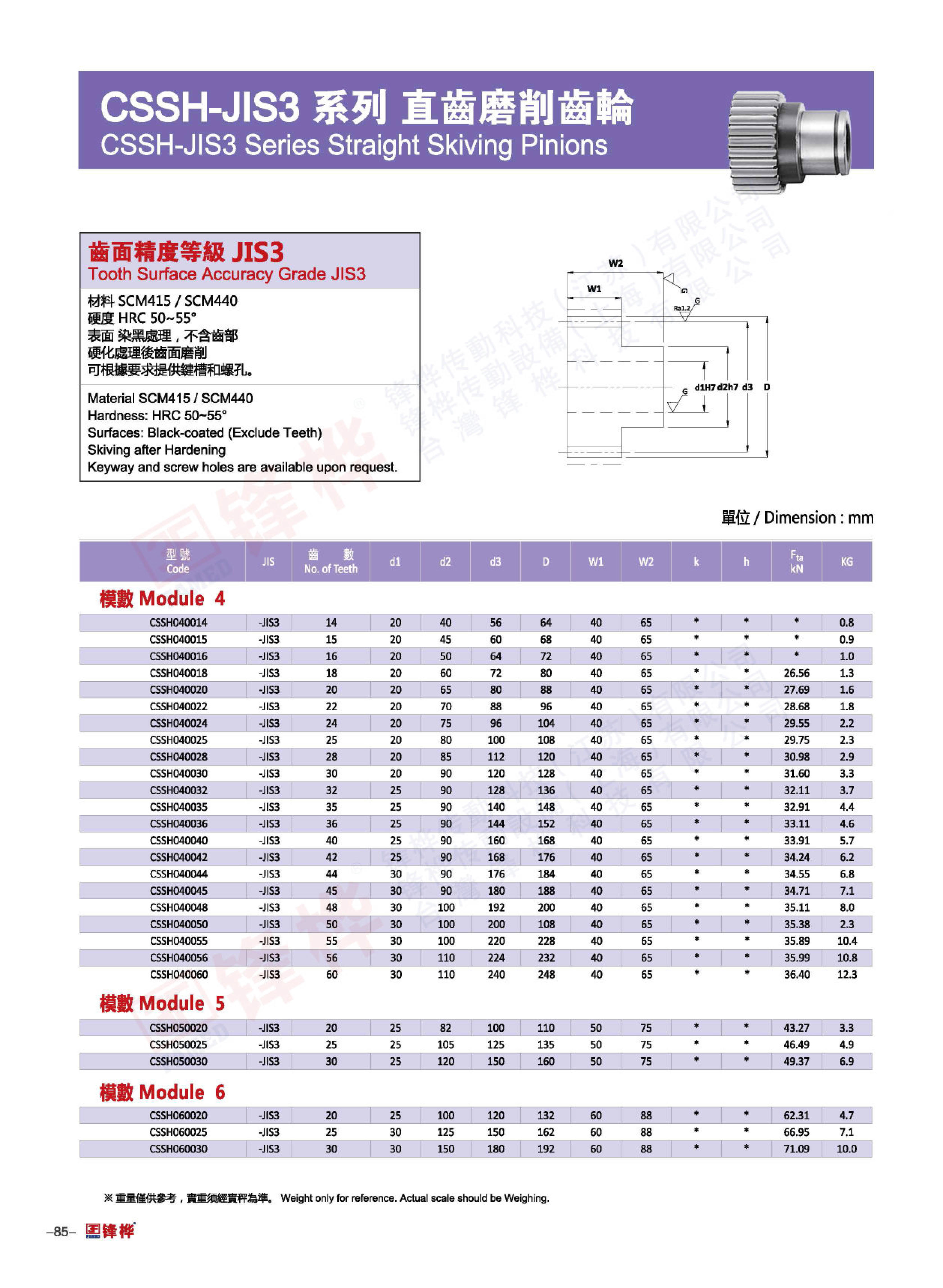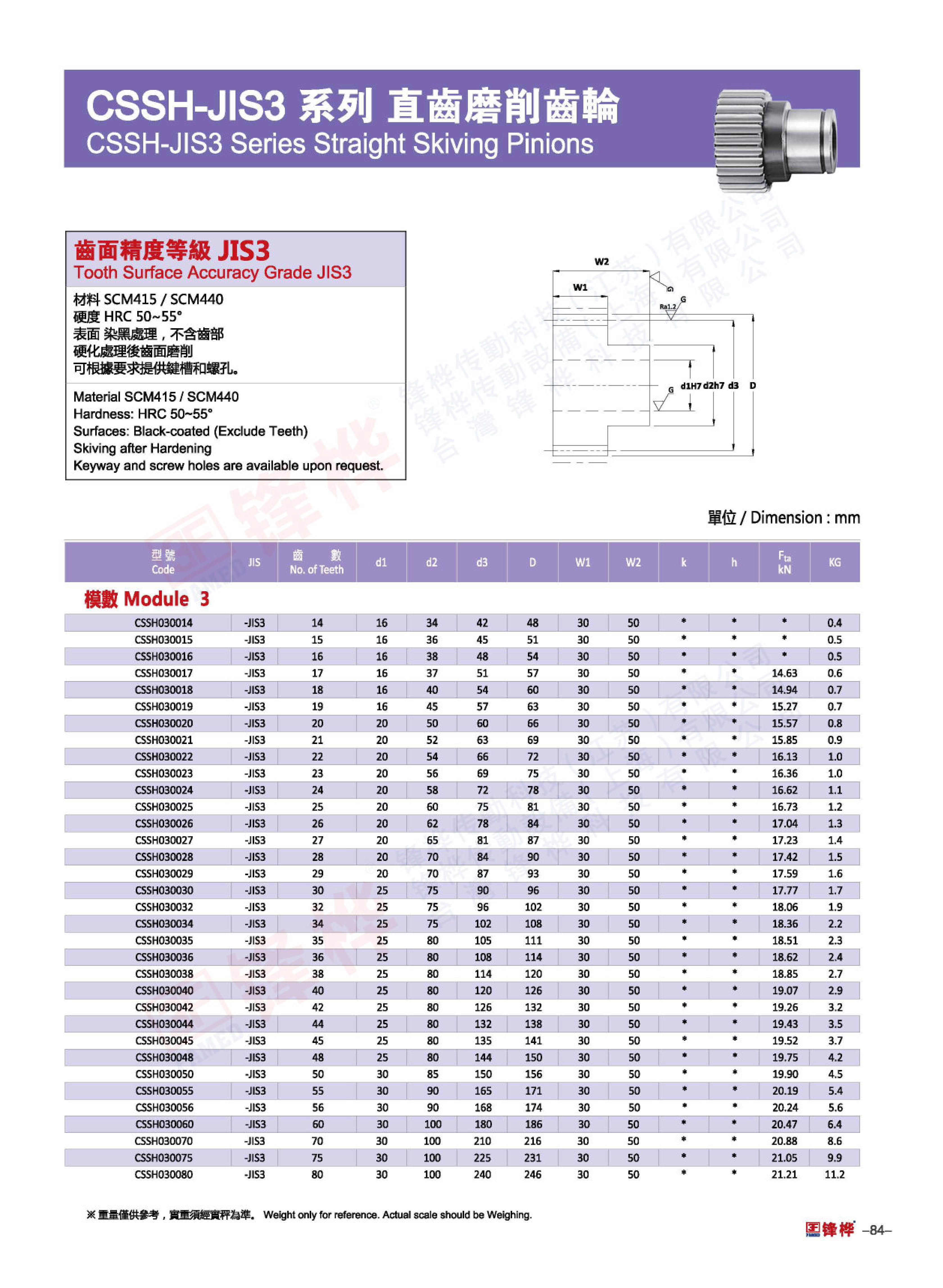 CSSH-JIS3系列 直齿磨削齿轮(P80-85)