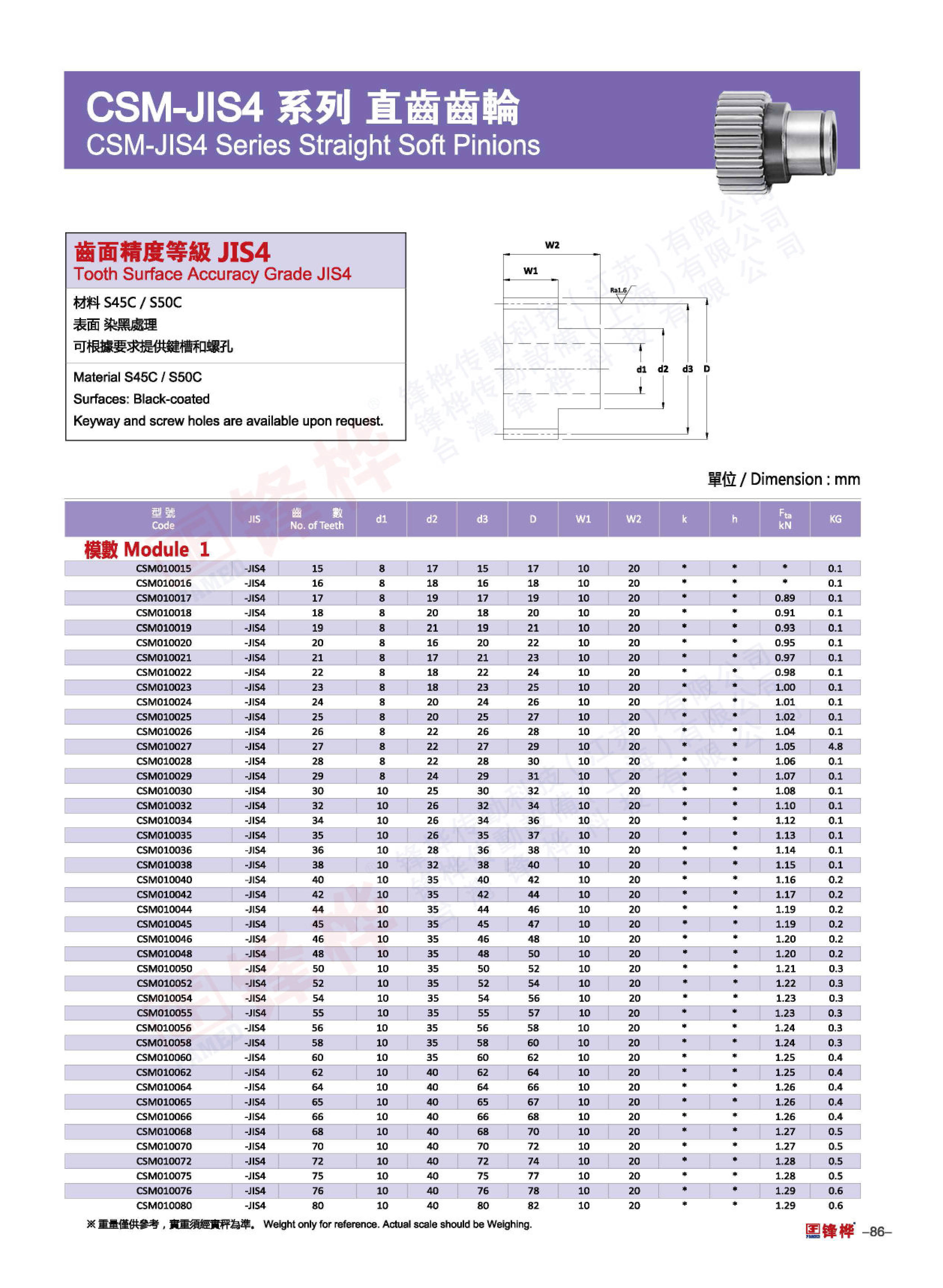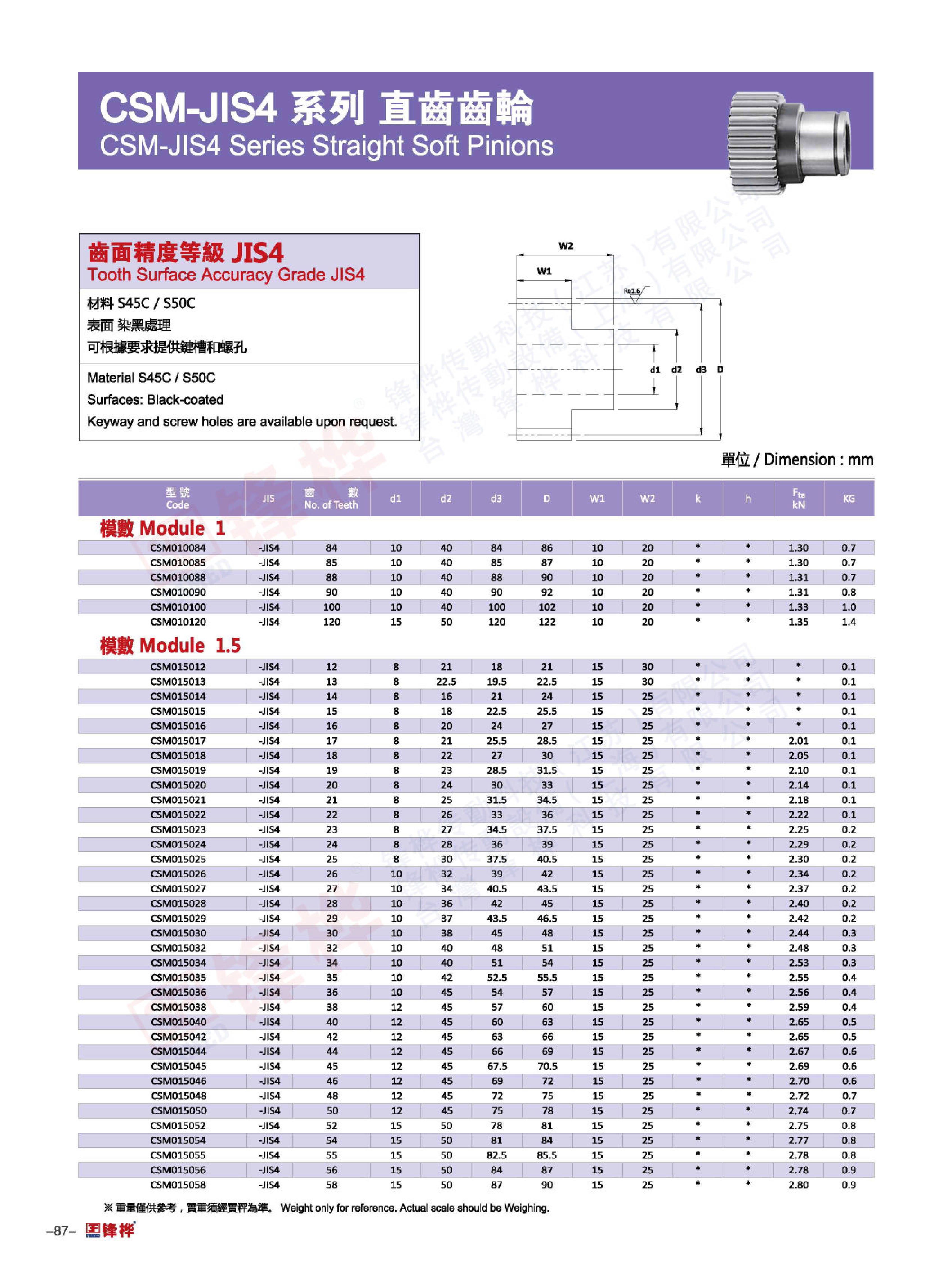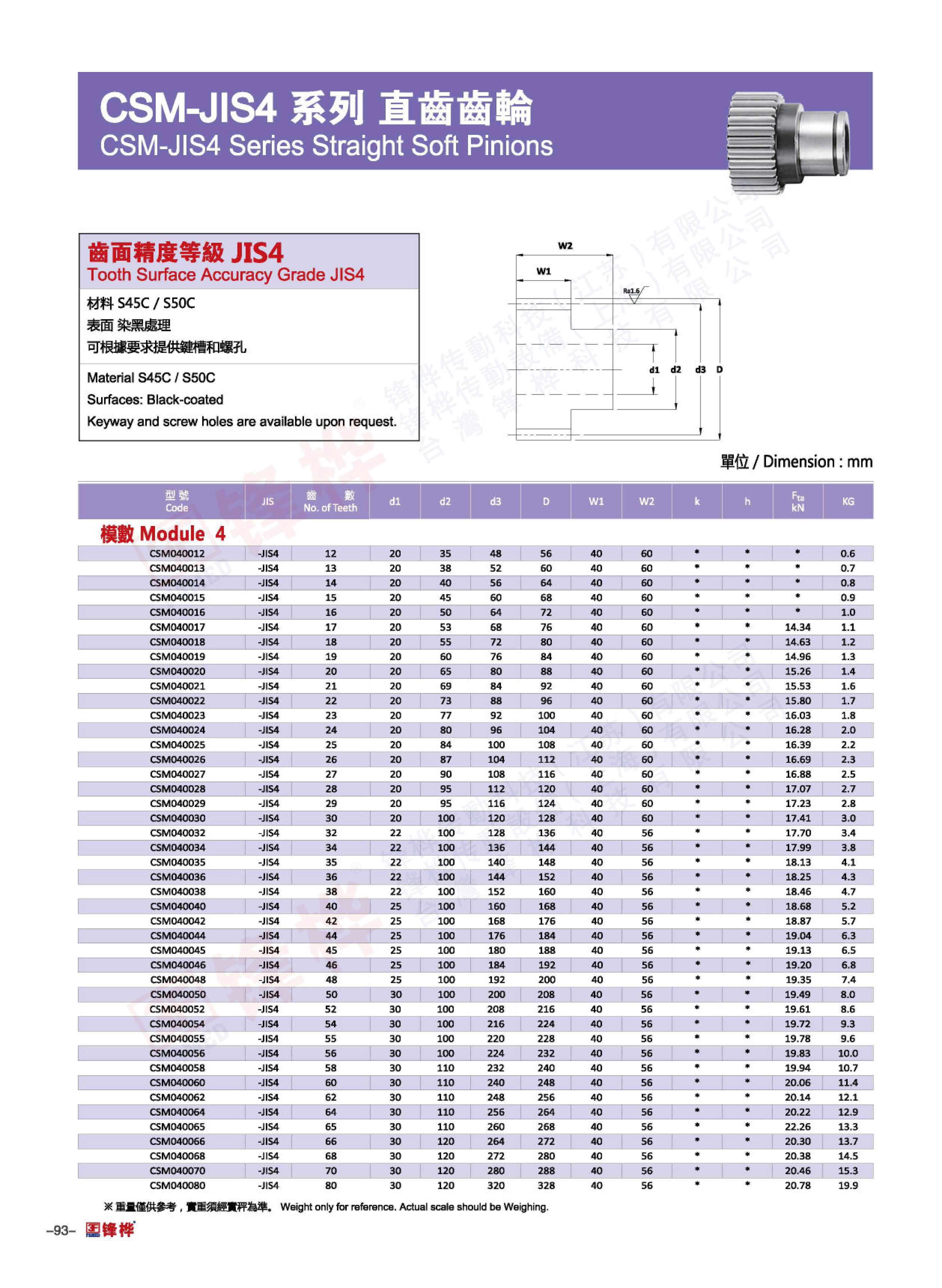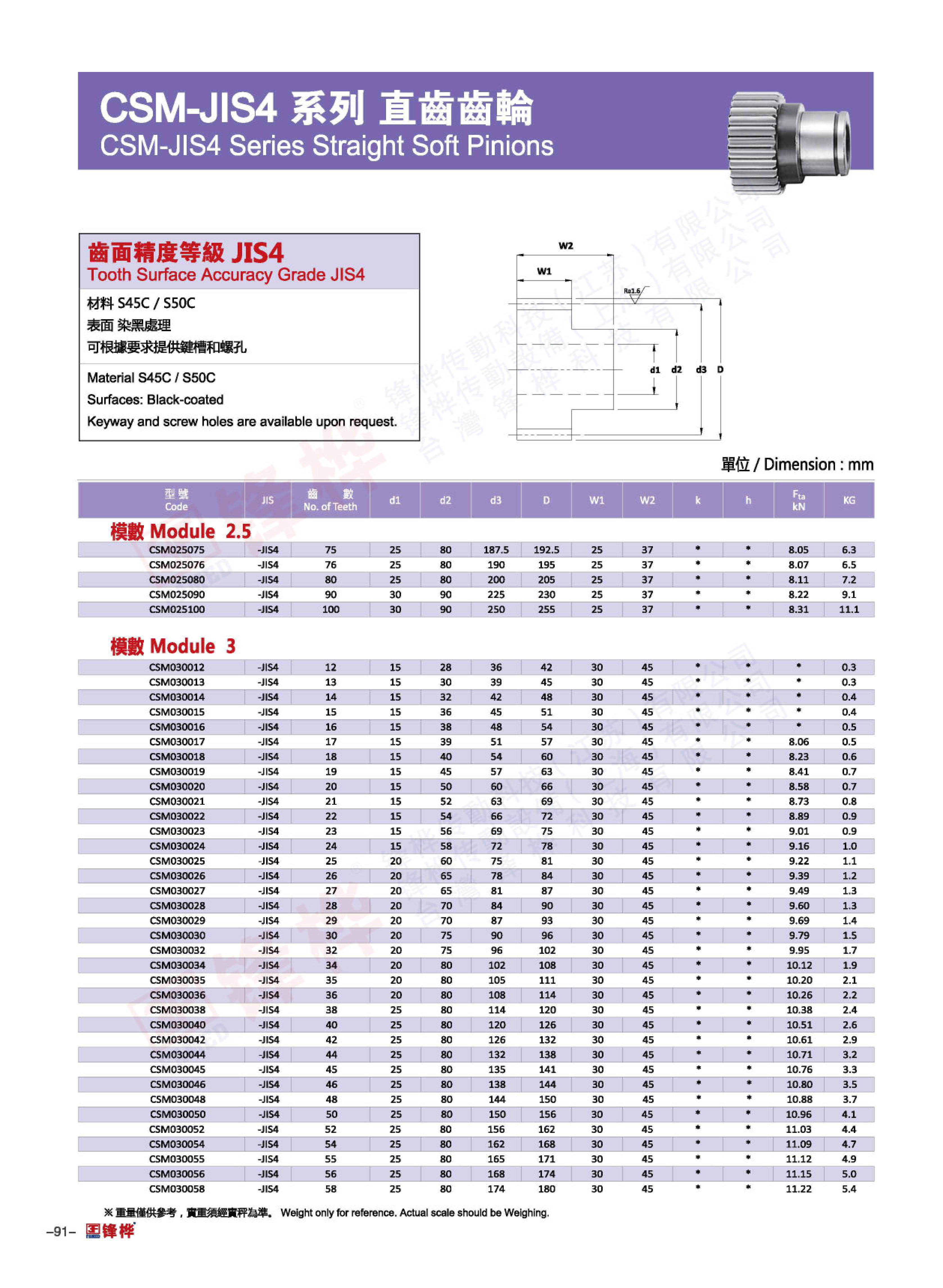 CSM-JIS4系列 直齿齿轮(P86-96)