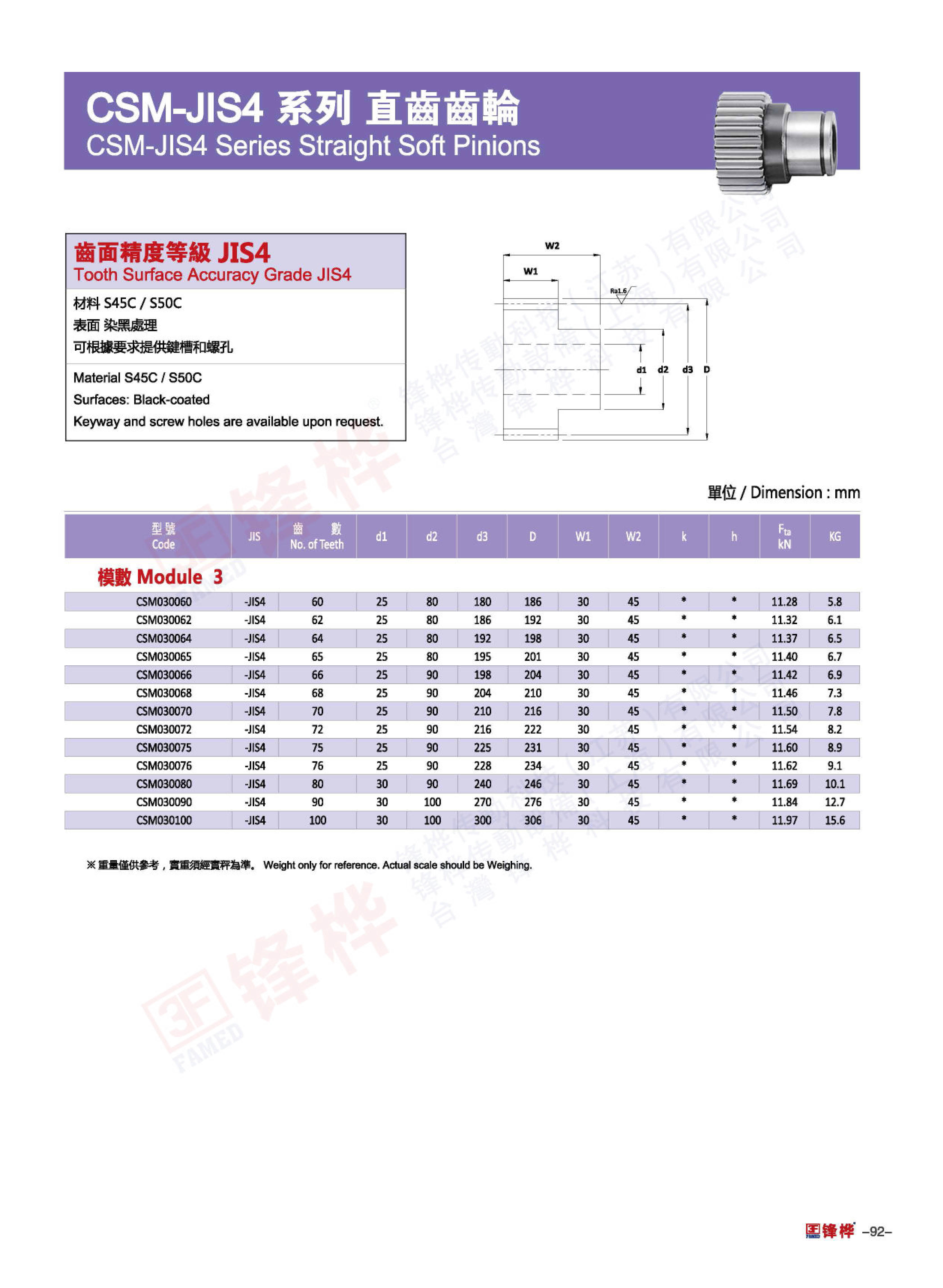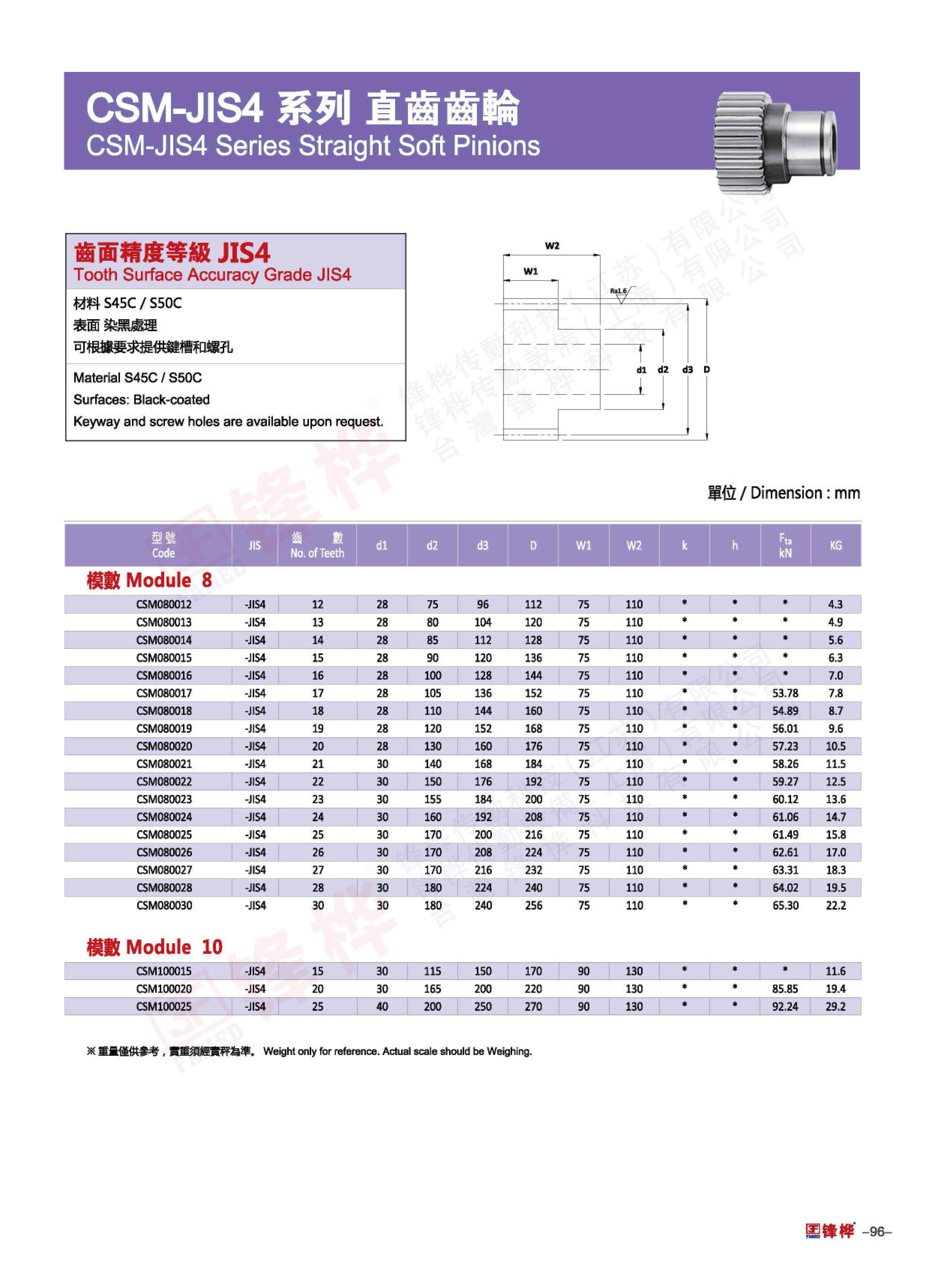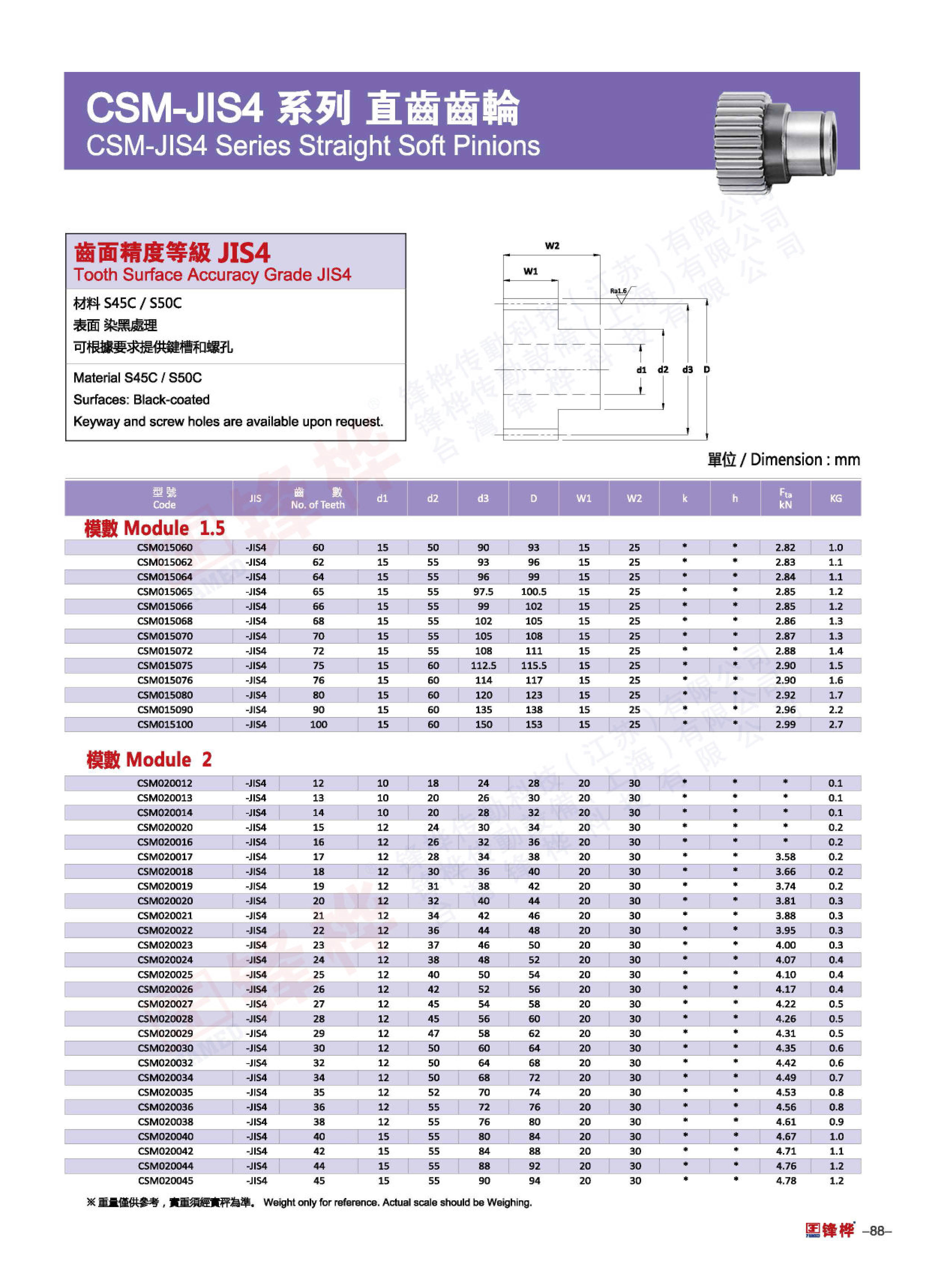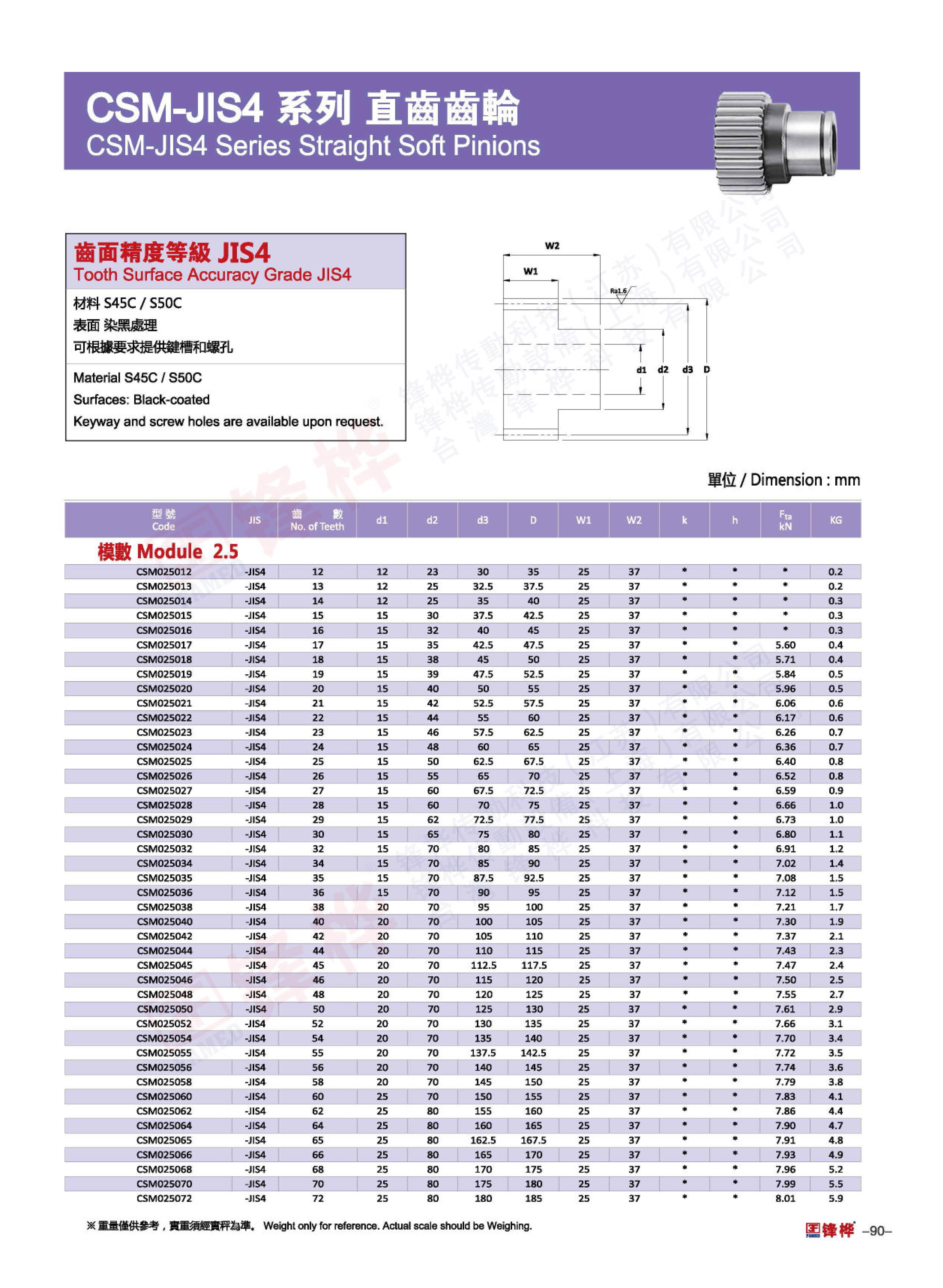 CSM-JIS4系列 直齿齿轮(P86-96)