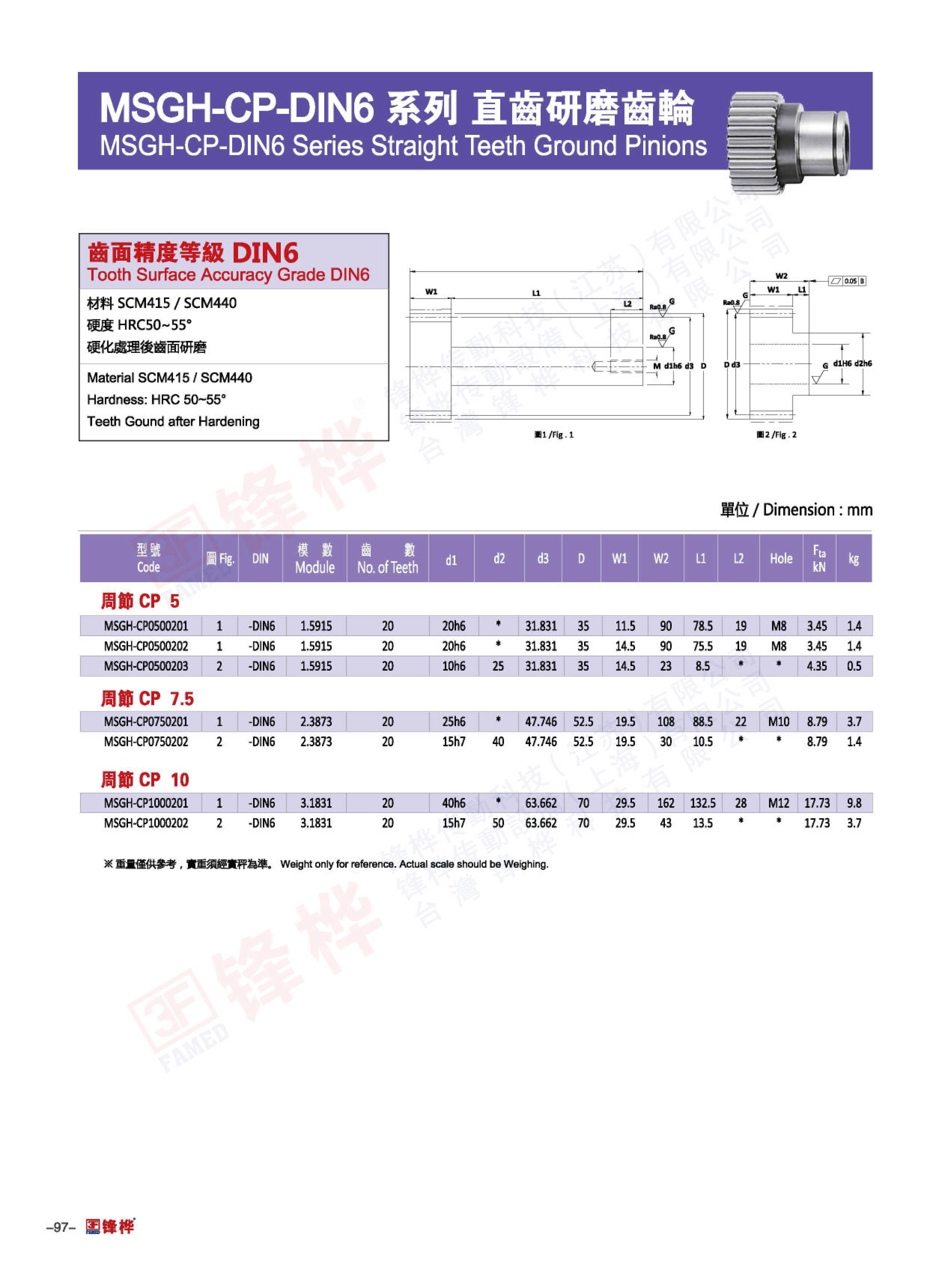 MSGH-CP-DIN6系列 直齿研磨齿轮(P97)