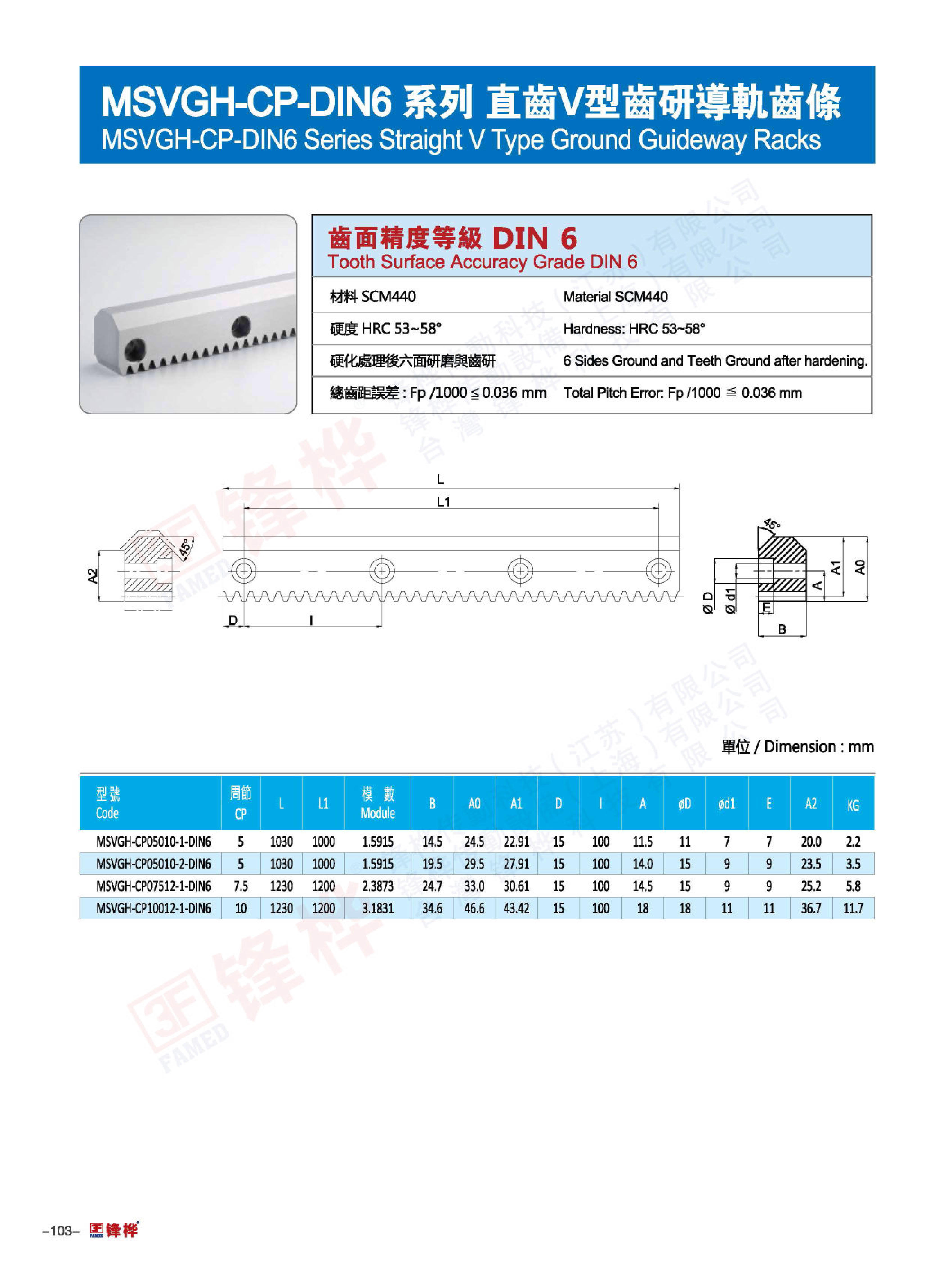 MSVGH-CP-DIN6系列 直齿V型齿研导轨齿条(P103)