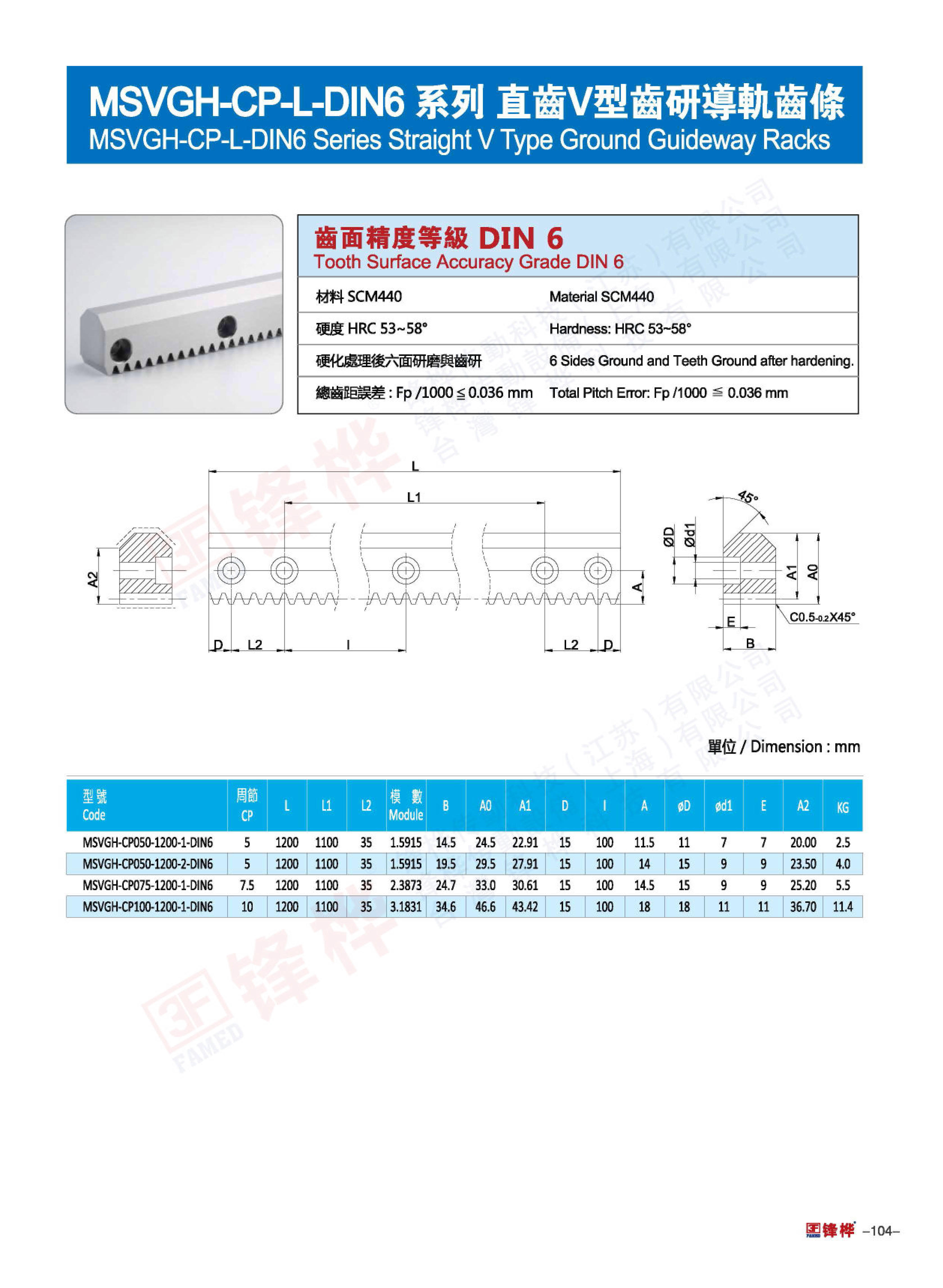 MSVGH-CP-L-DIN6系列 直齿V型齿研导轨齿条(P104)