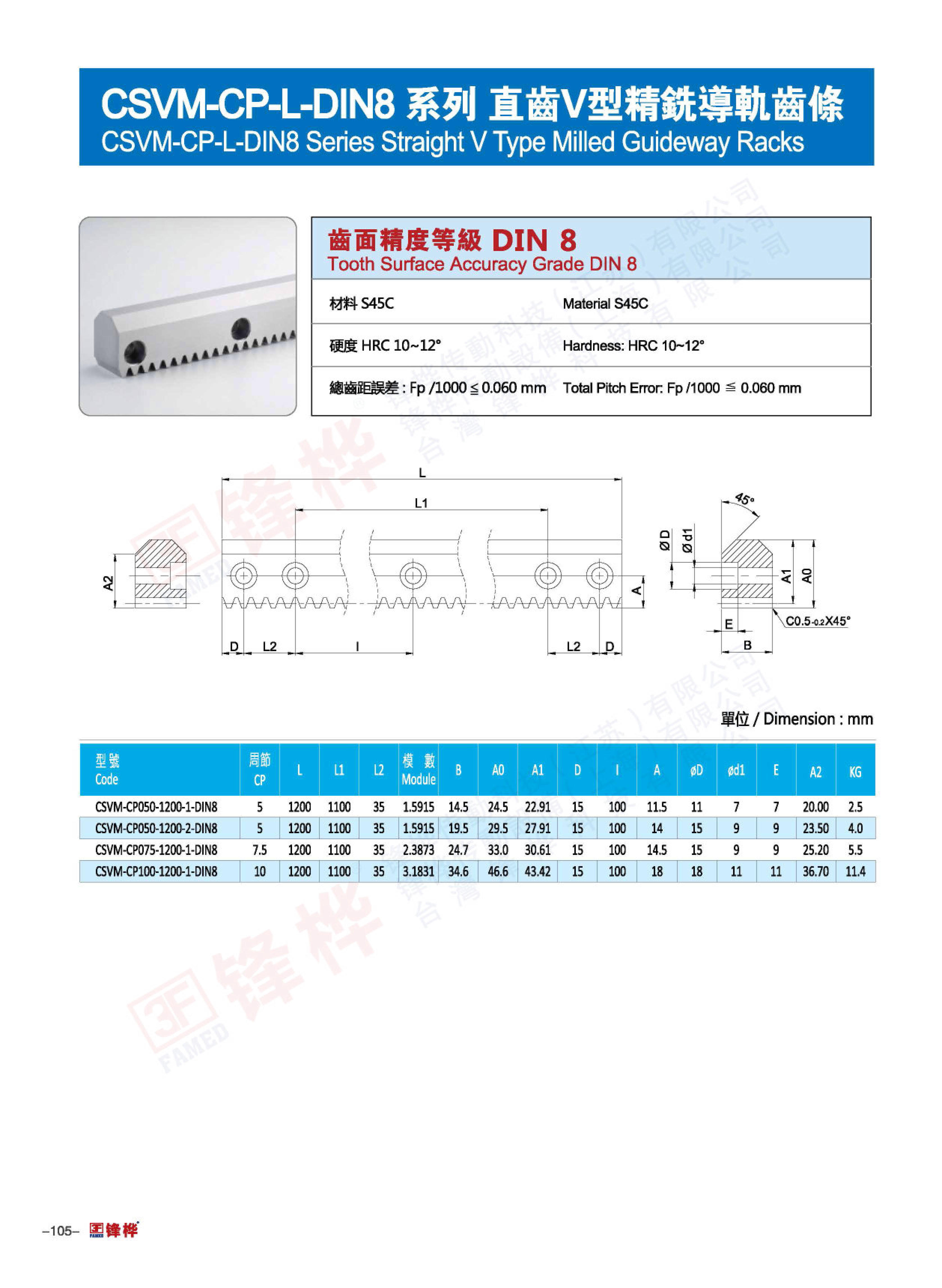 CSVM-CP-L-DIN8系列 直齿V型精铣导轨齿条(P105)