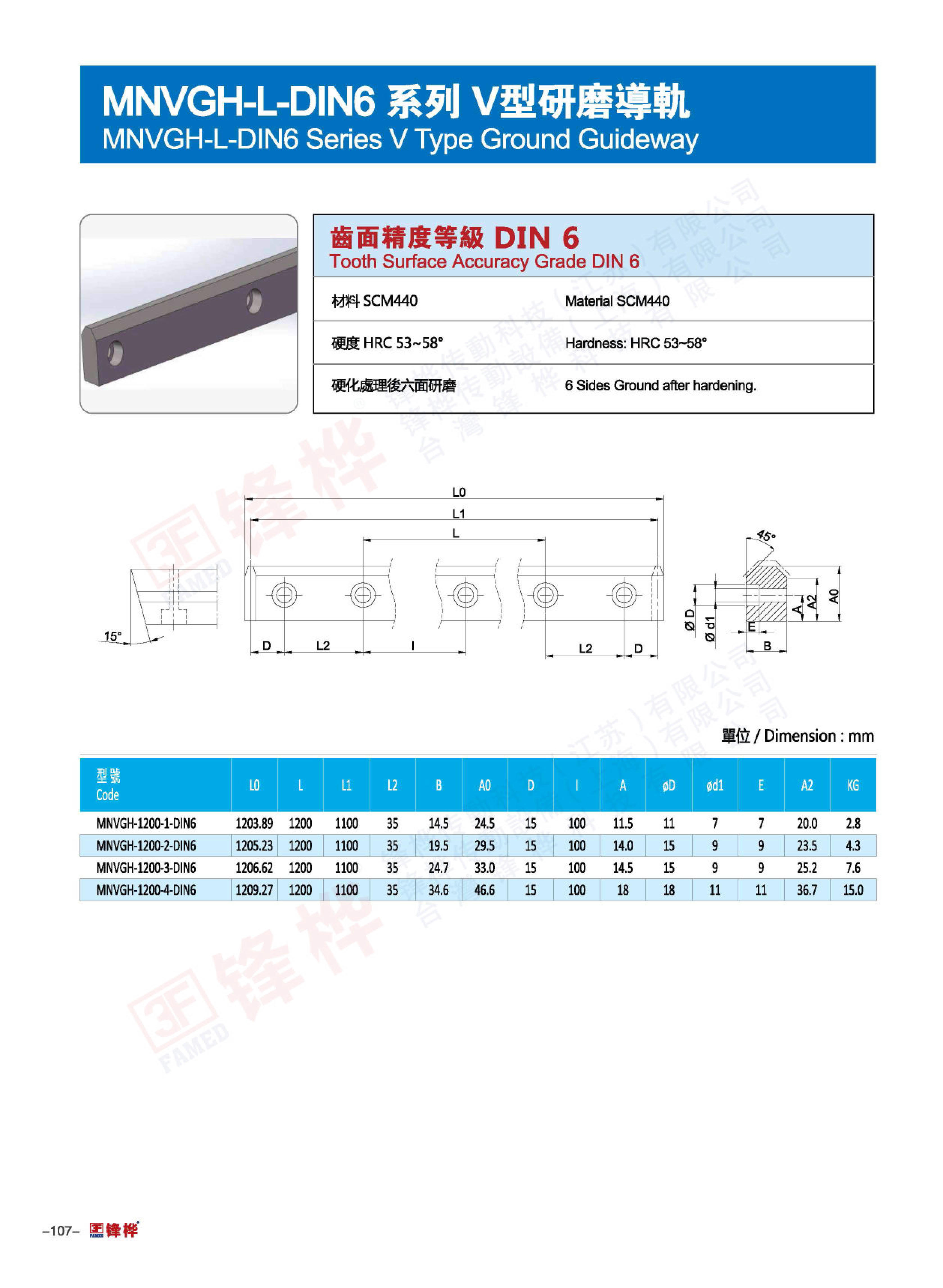 MNVGH-L-DIN6系列 V型研磨导导轨(P107)
