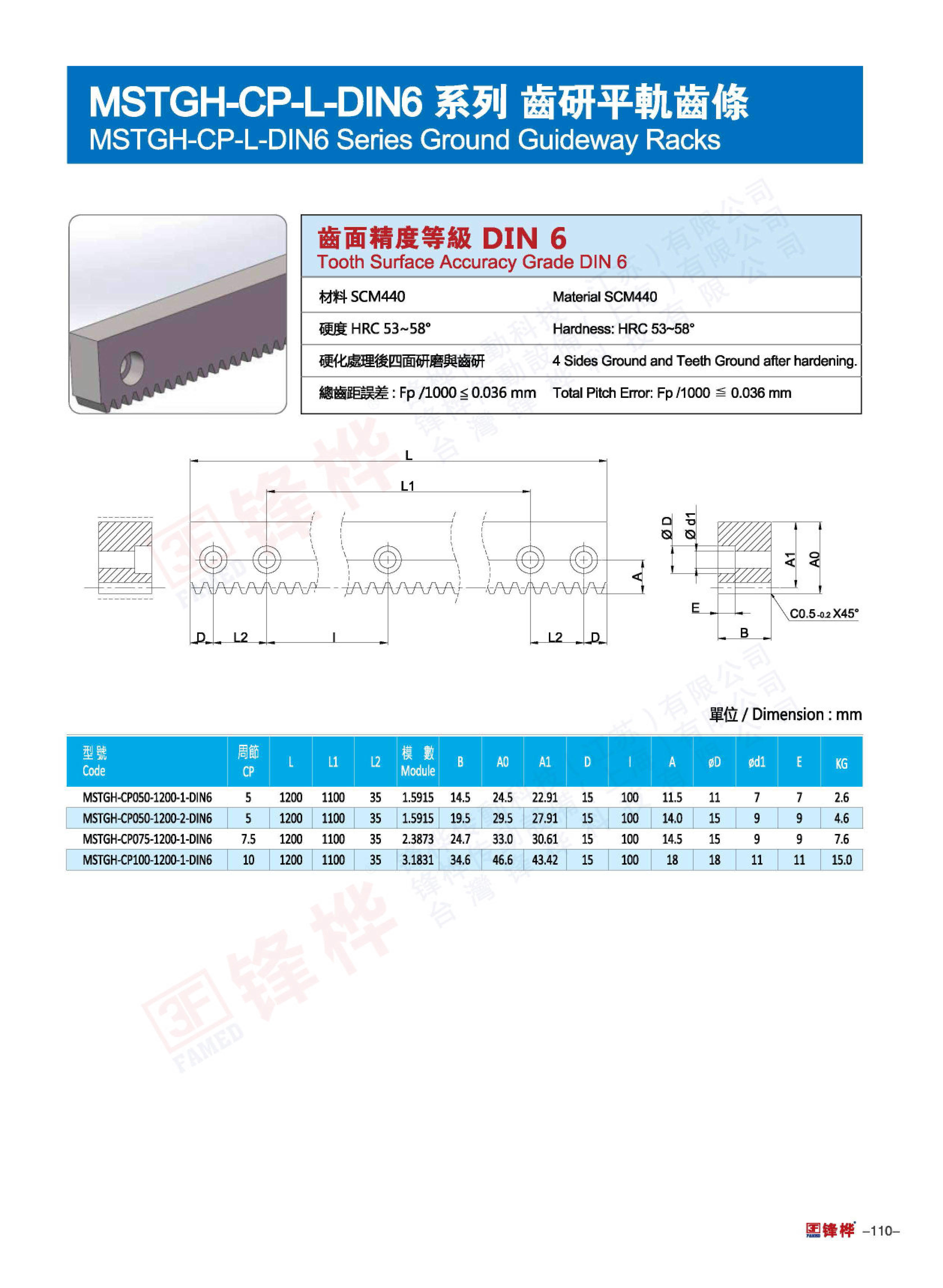 MSTGH-CP-DIN6系列 研磨平轨齿条(P109)
