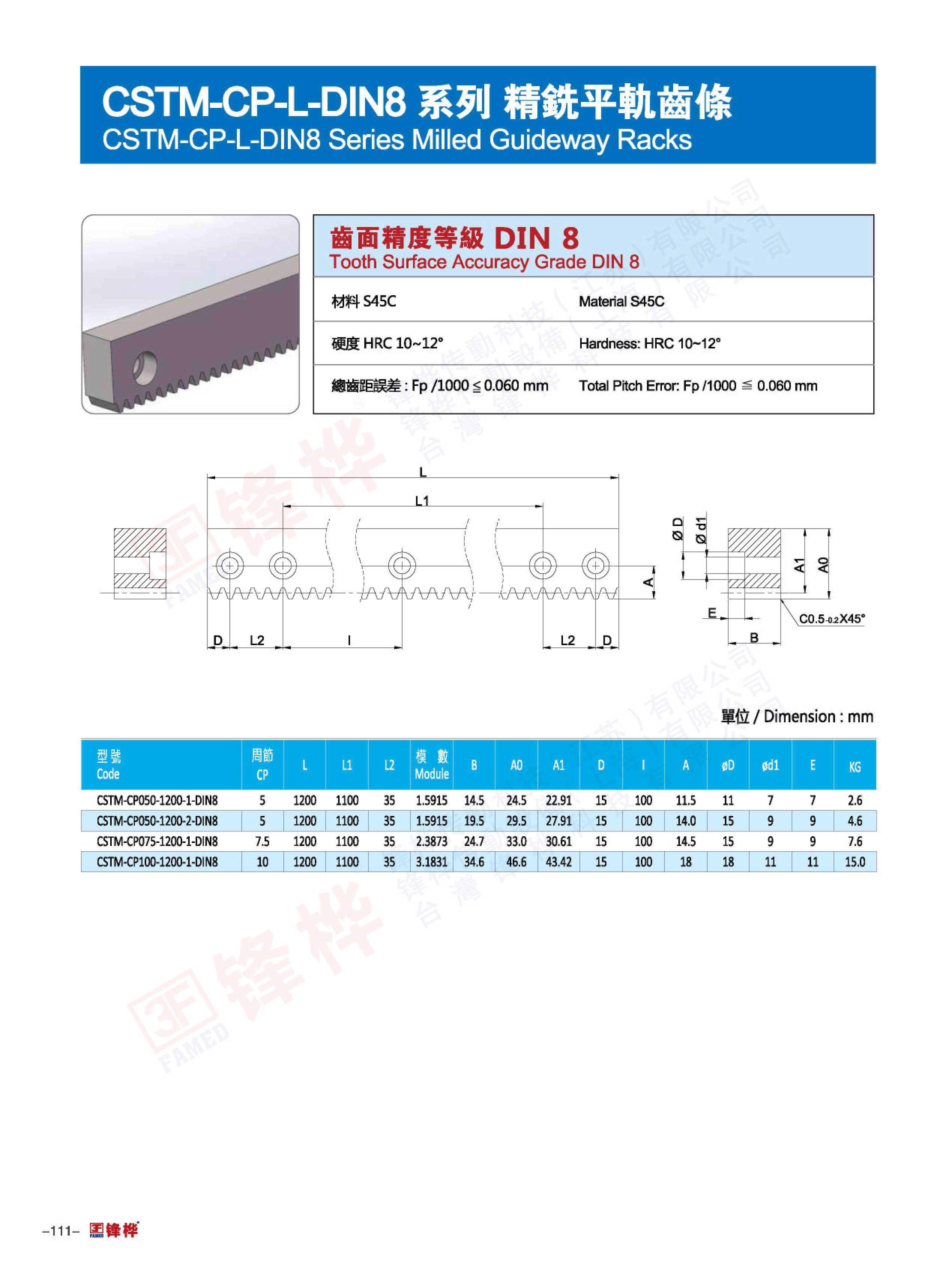 CSTM-CP-L-DIN8系列 精铣平轨齿条(P111)