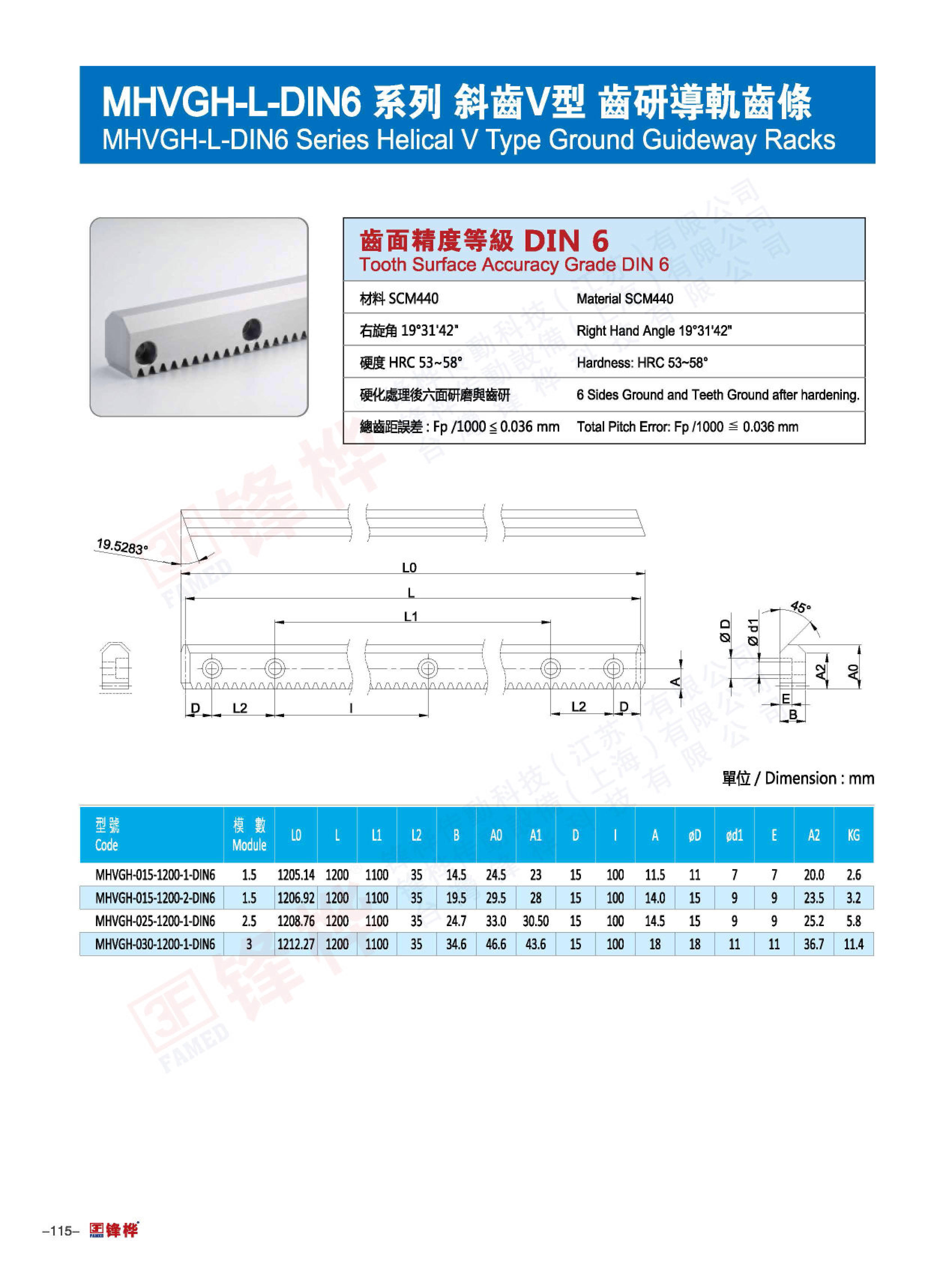 MNVGH-L-DIN6系列 斜齿V型齿研导轨齿条(P115)