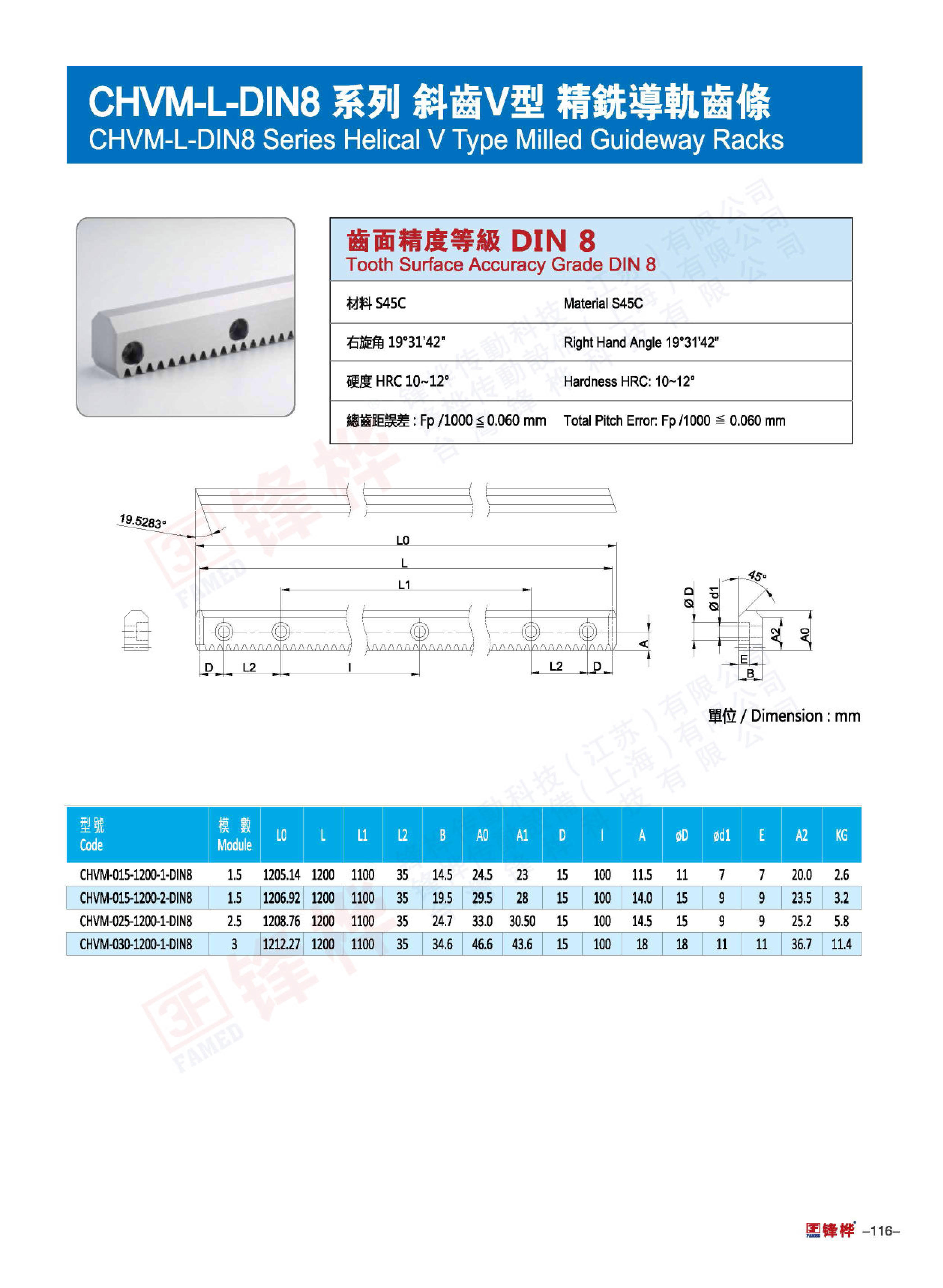 CHVM-L-DIN8系列 斜齿V型 精铣导轨齿条(P116)