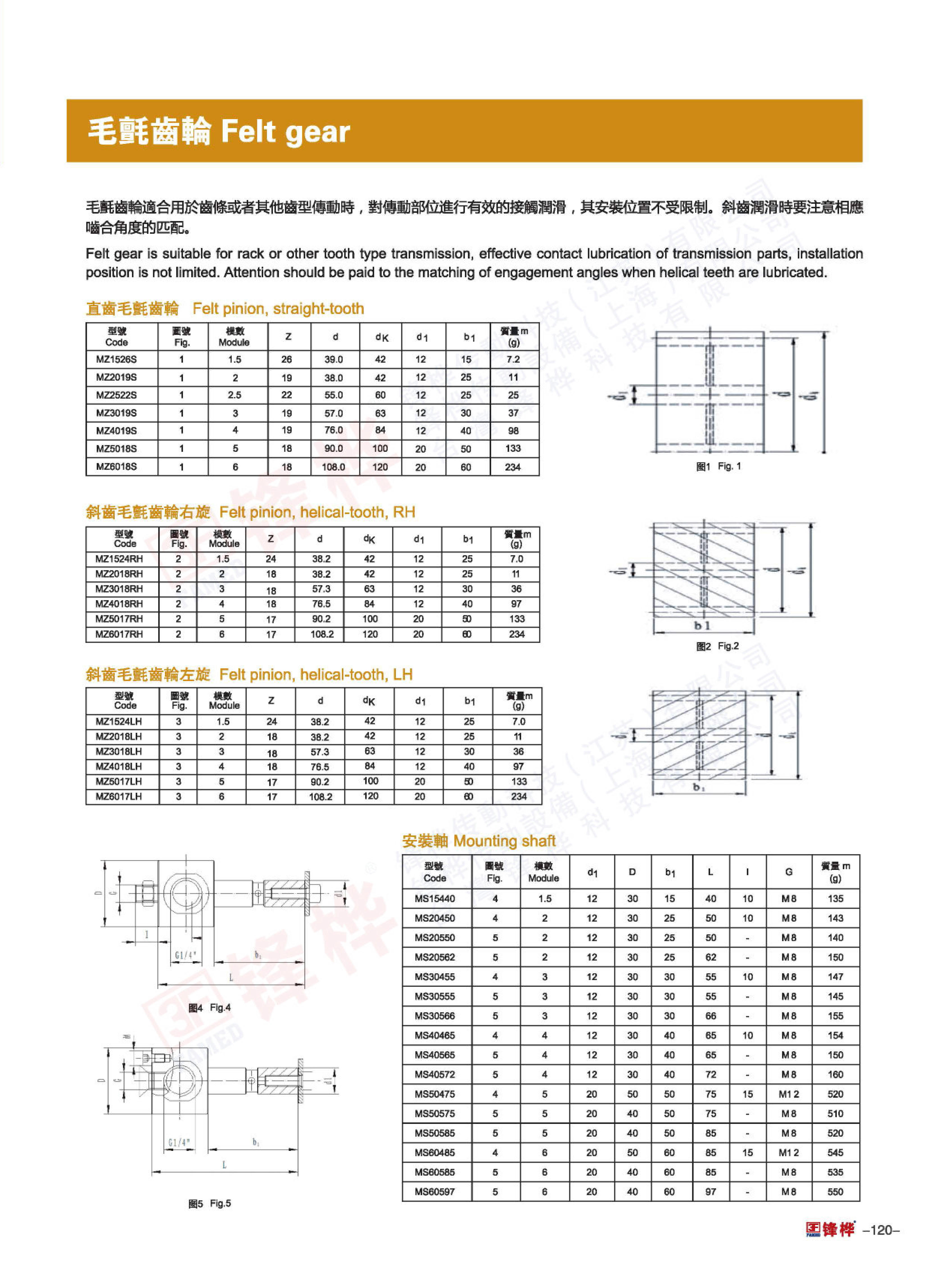 毛毡齿轮适合用于齿条或者其他齿型传动时,对传动部位进行有效的接触润滑,其安装位置不受限制。斜齿润滑时要注意相应 啮合角度的匹配。