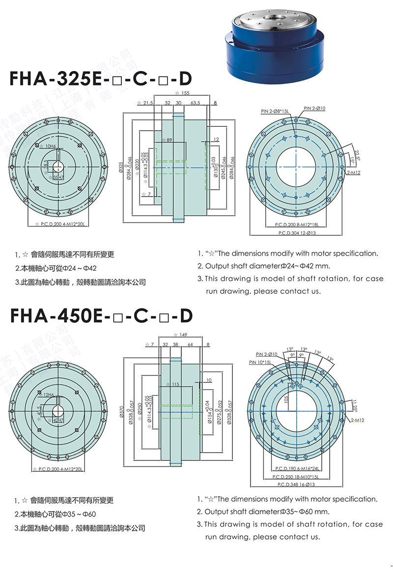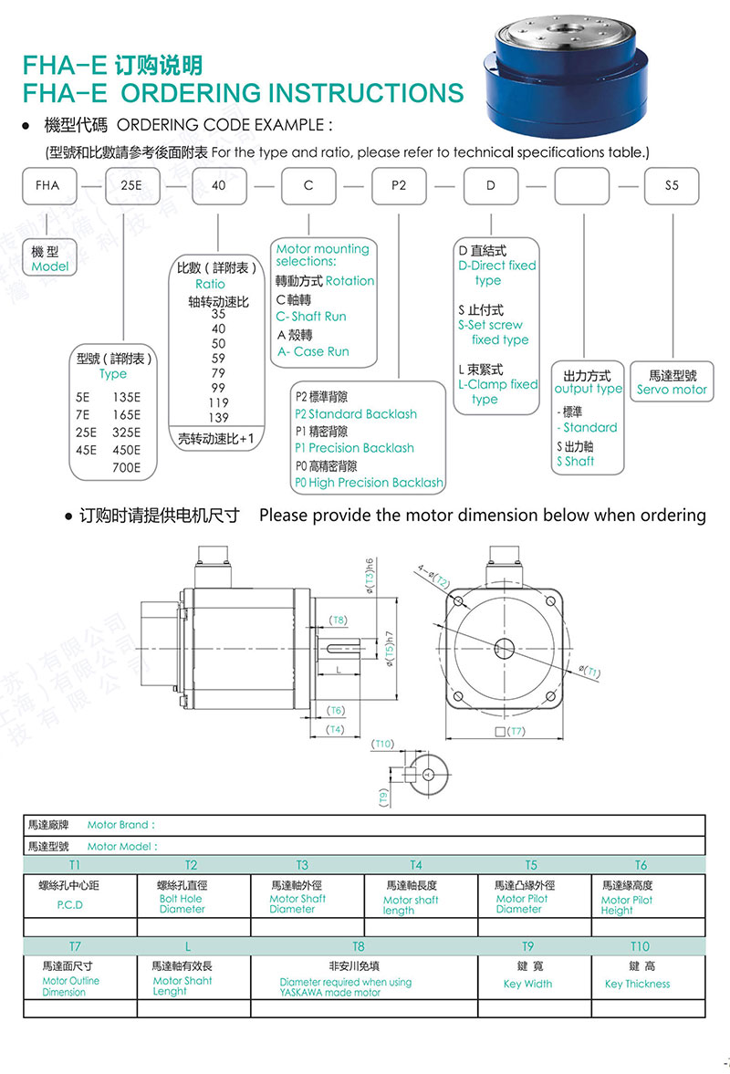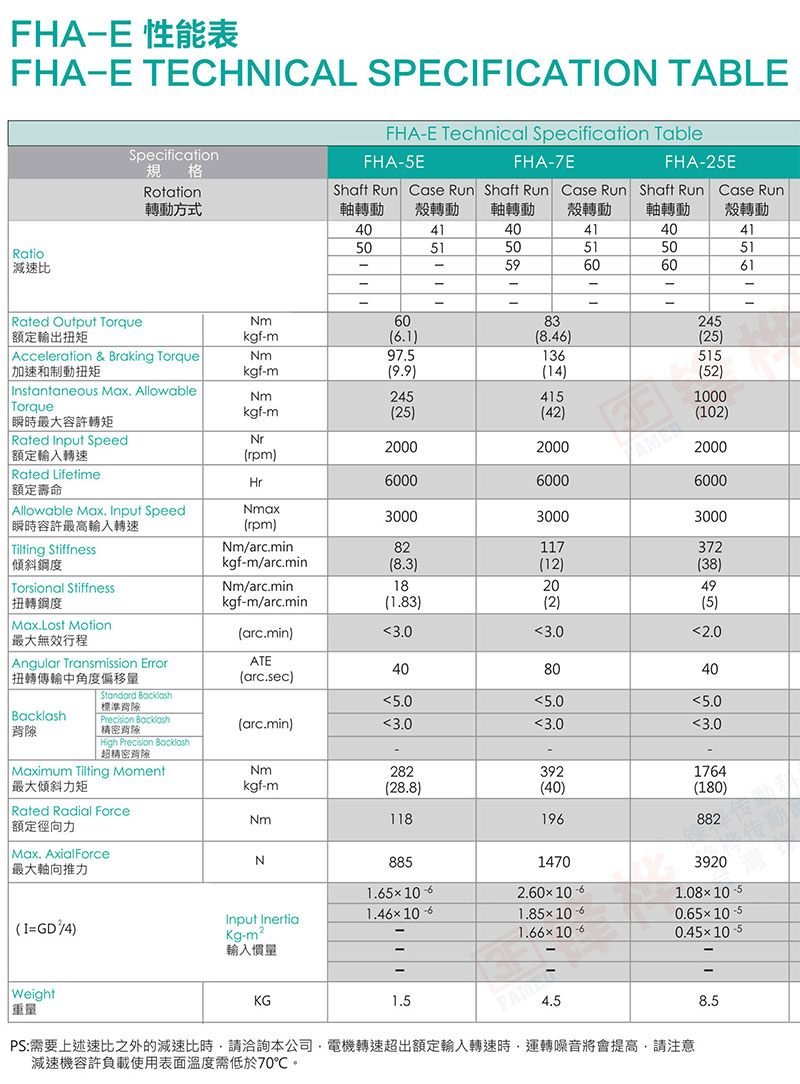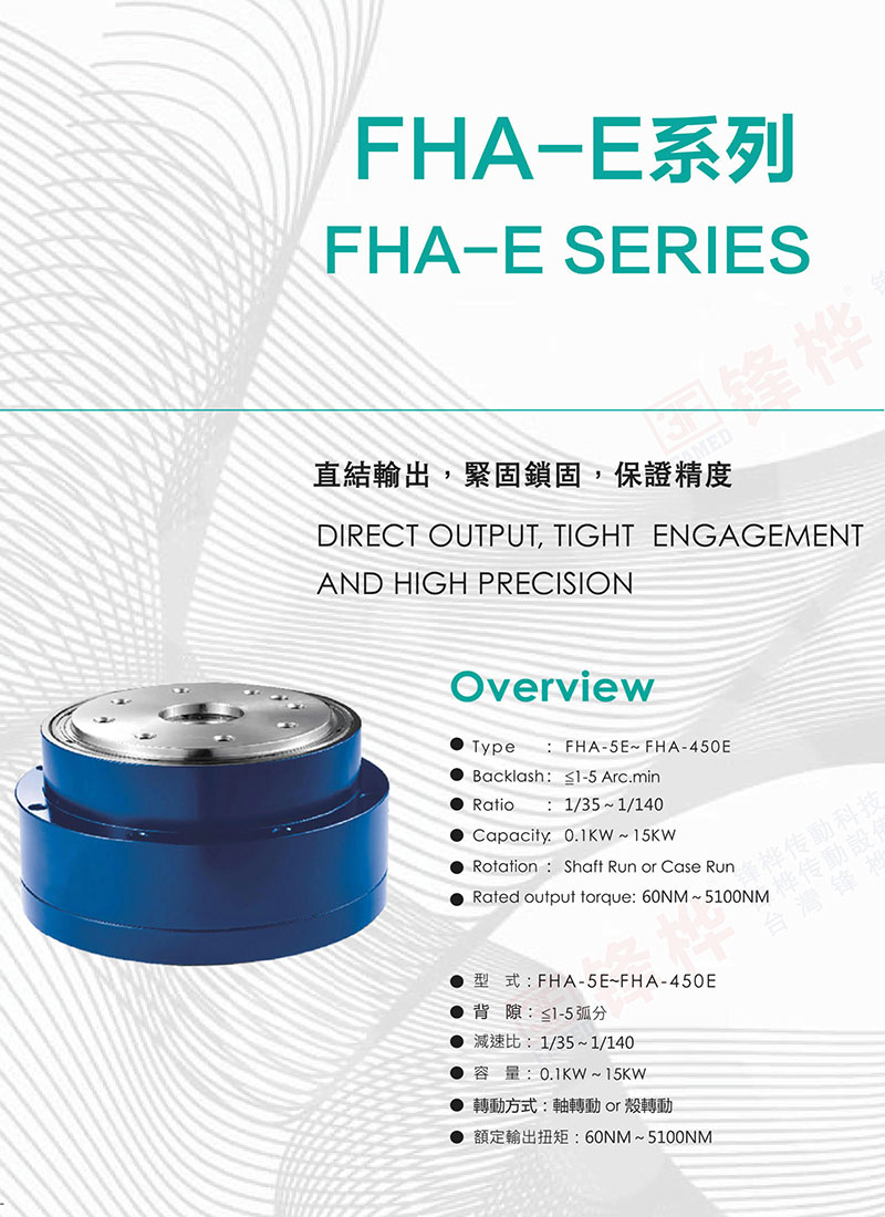适用于变位机,刀塔,工具机以及伺服马达许直结于减速机中的机台与机构,FHA-E最大的特点是拥有直结的输出,紧固的锁固,并能保证精度。