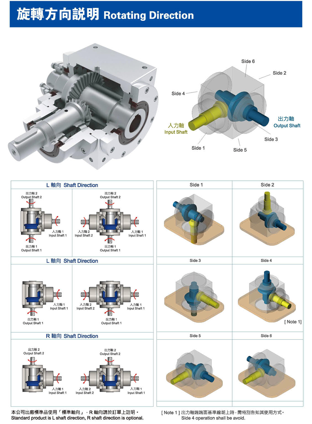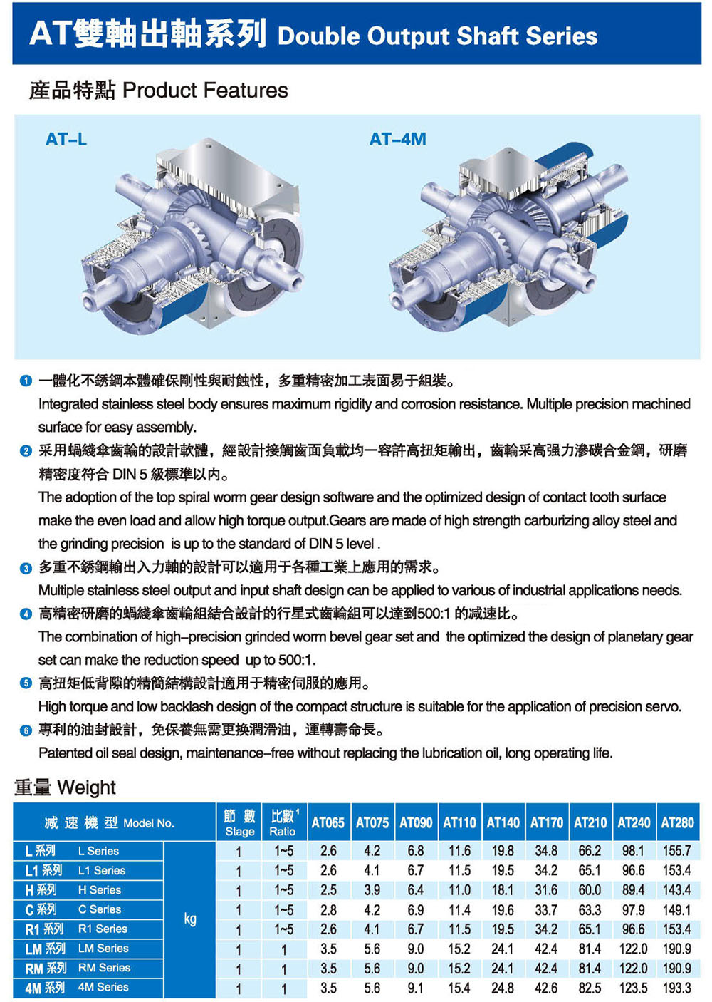 采用铜线伞齿轮输的设计软体,经设计接触齿面负载均一容许高扭矩输出,齿轮采高强力渗碳合金钢,研磨紧密度符合DIN5级标准以内。