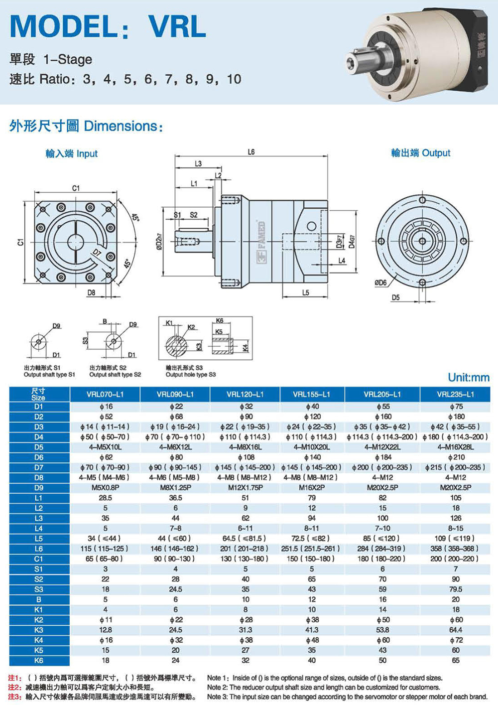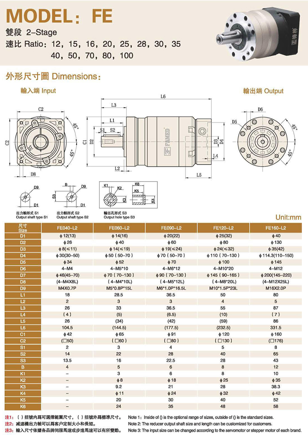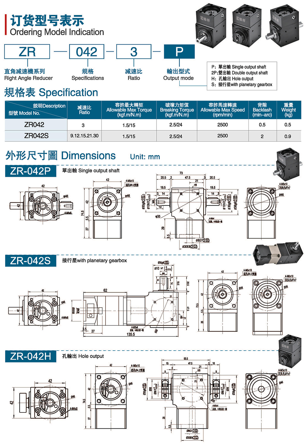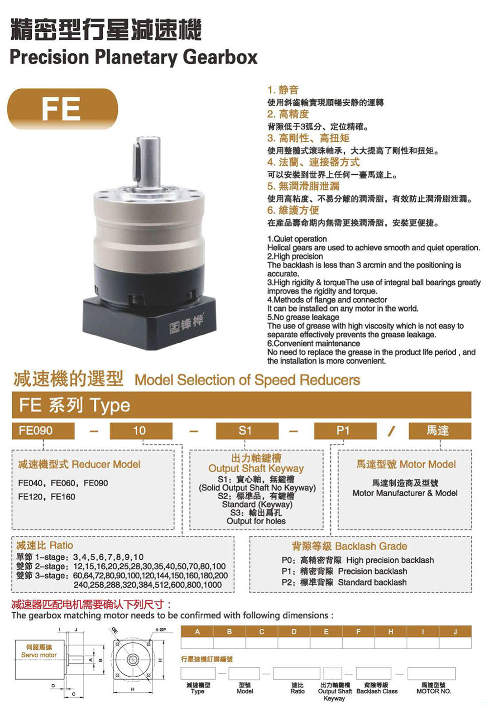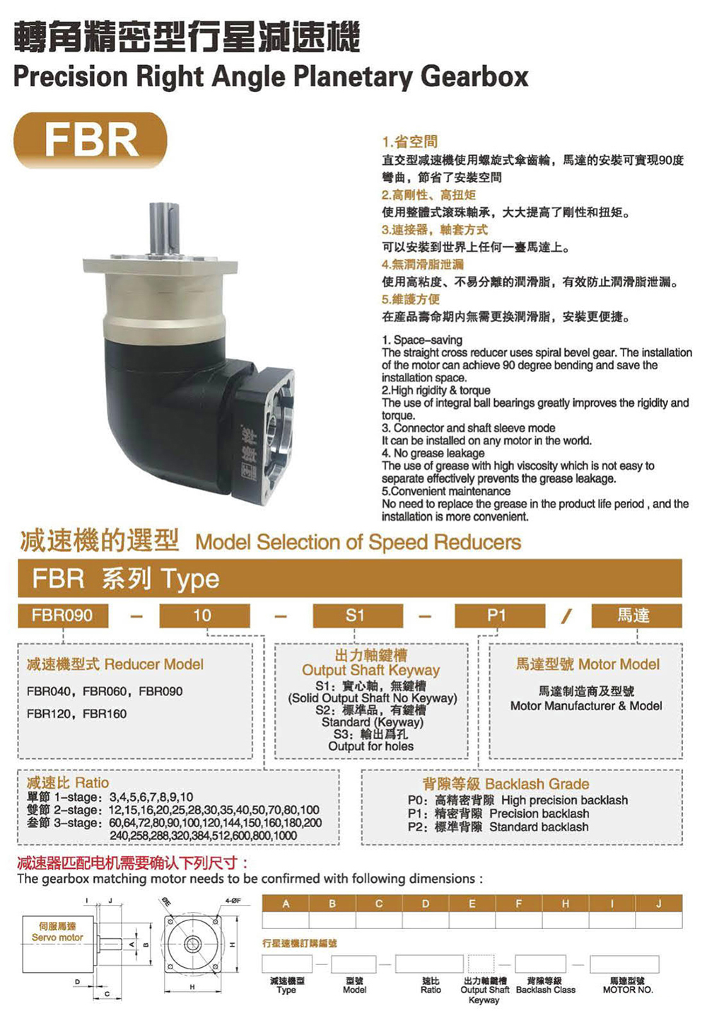 特性: 本体结构扎实、体积小,有效节省安装空问。 虽然体积小、重量轻。但具有高扭矩输出及低背隙的优异特性。 订购时请告知马达法兰及心轴尺寸。
