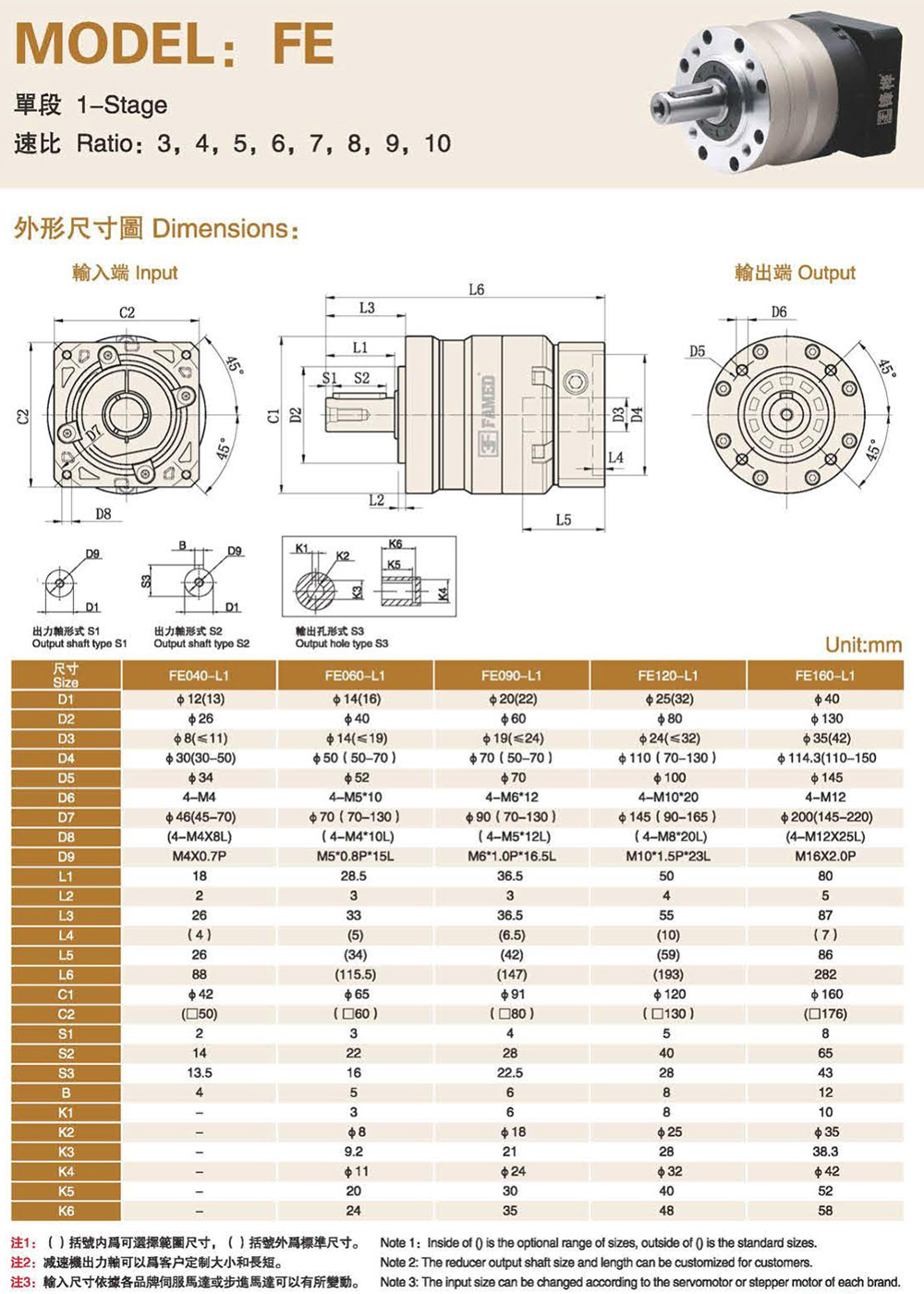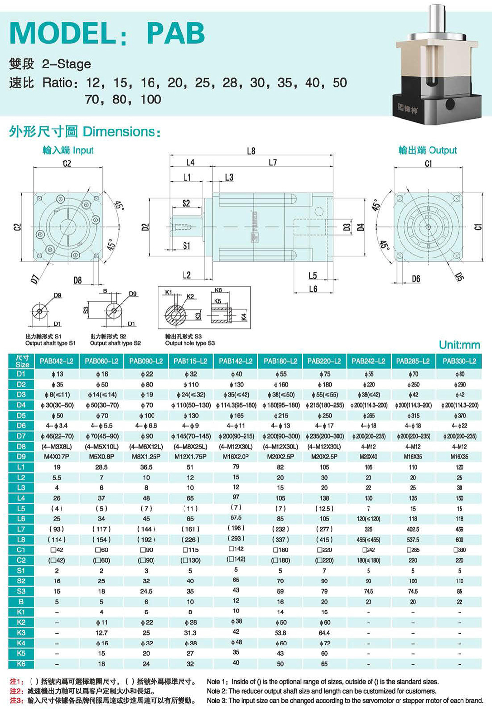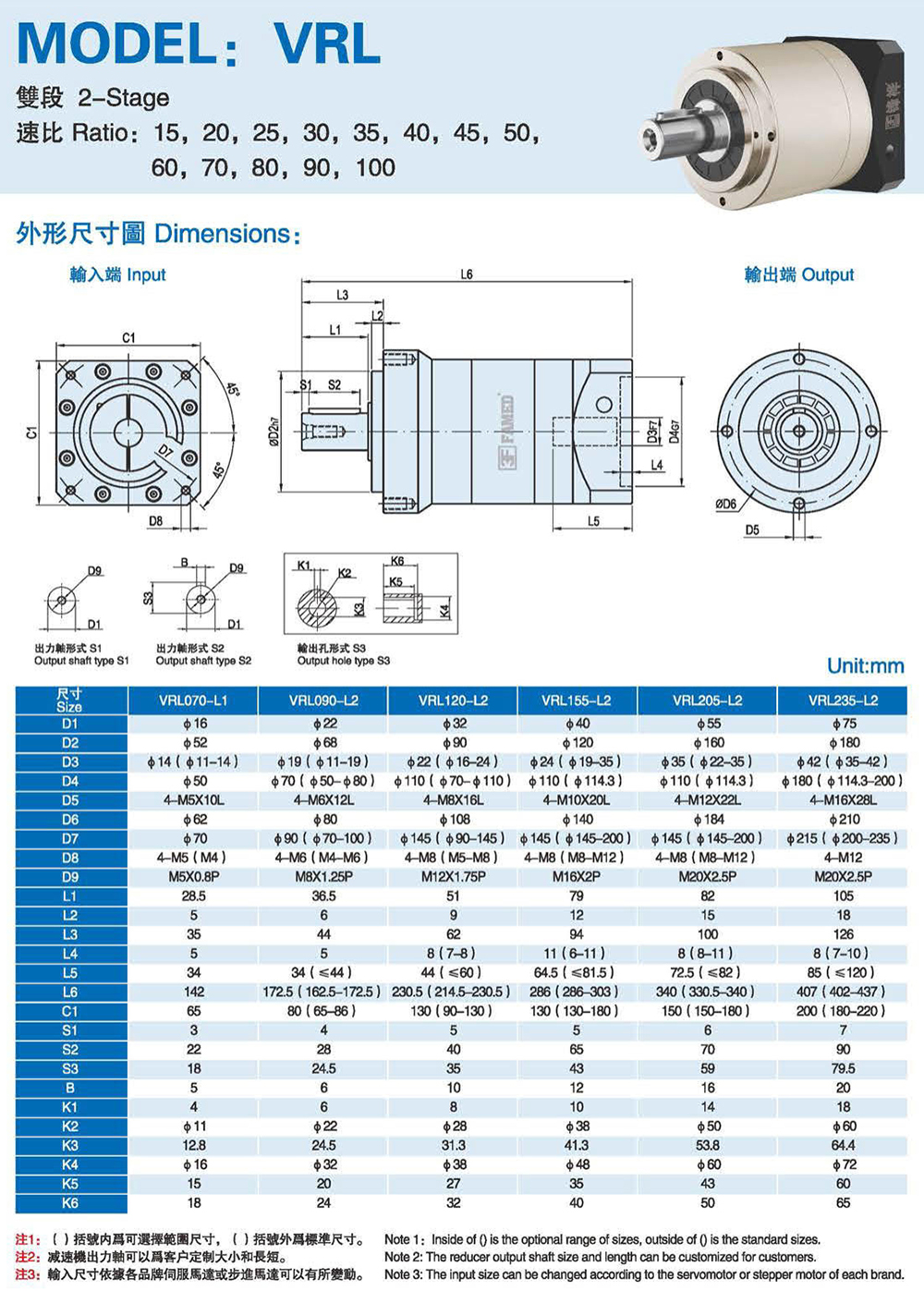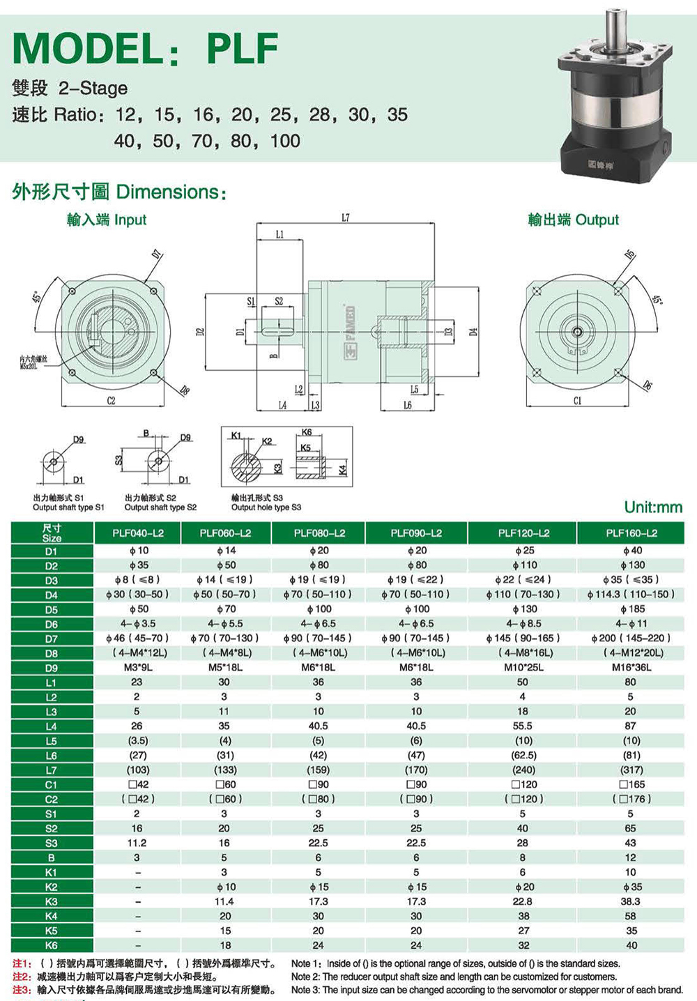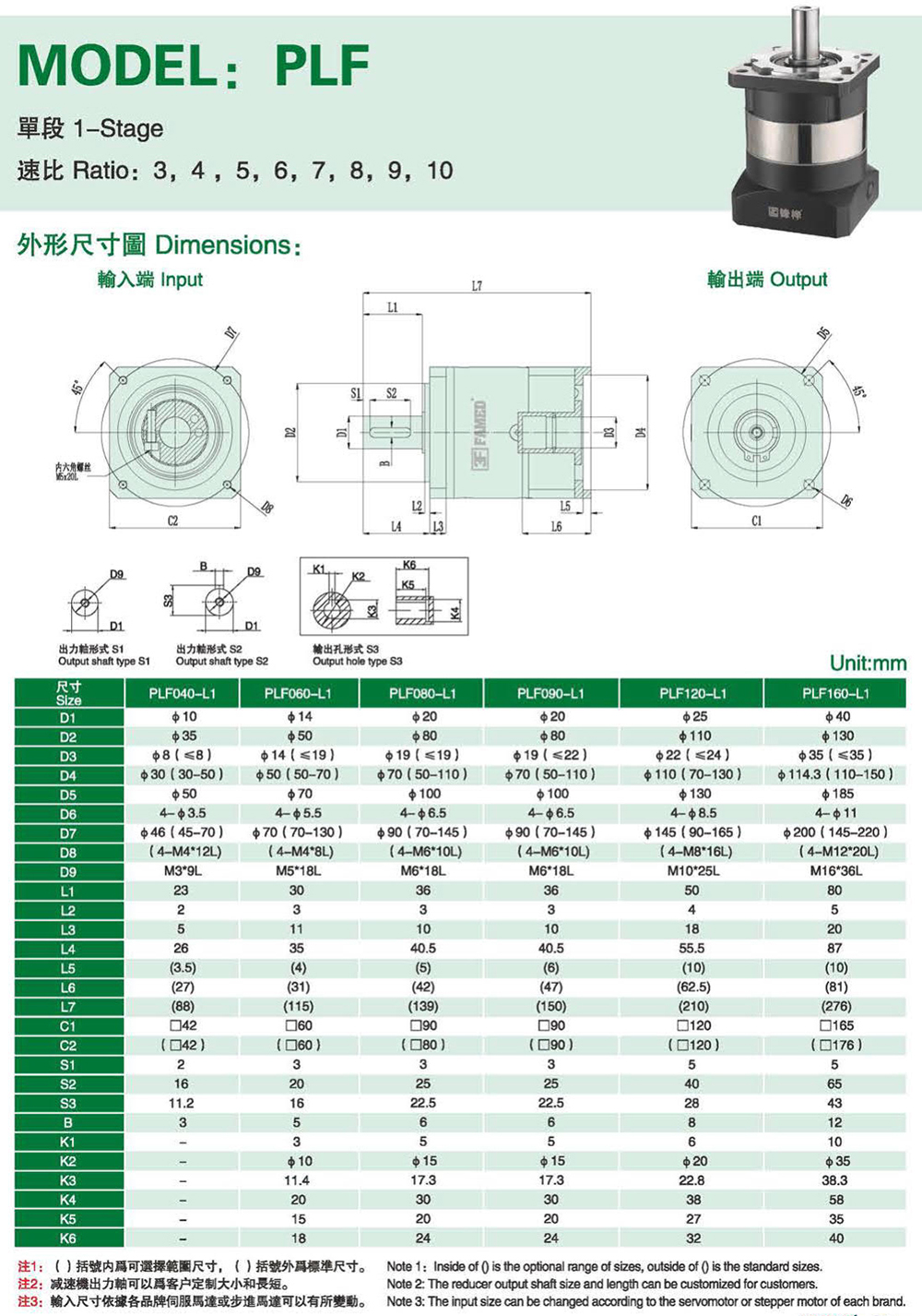 特性: 本体结构扎实、体积小,有效节省安装空问。 虽然体积小、重量轻。但具有高扭矩输出及低背隙的优异特性。 订购时请告知马达法兰及心轴尺寸。