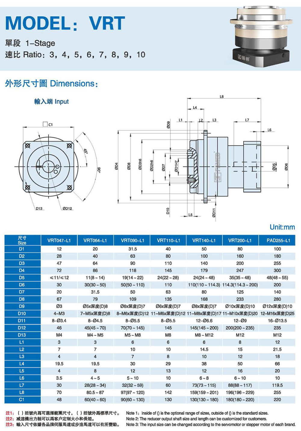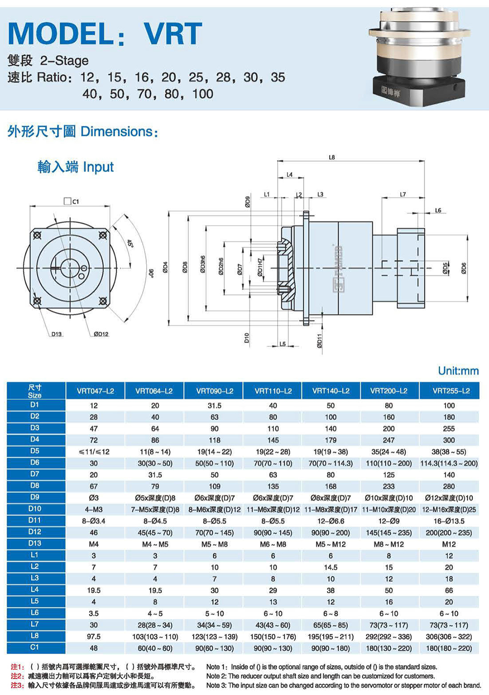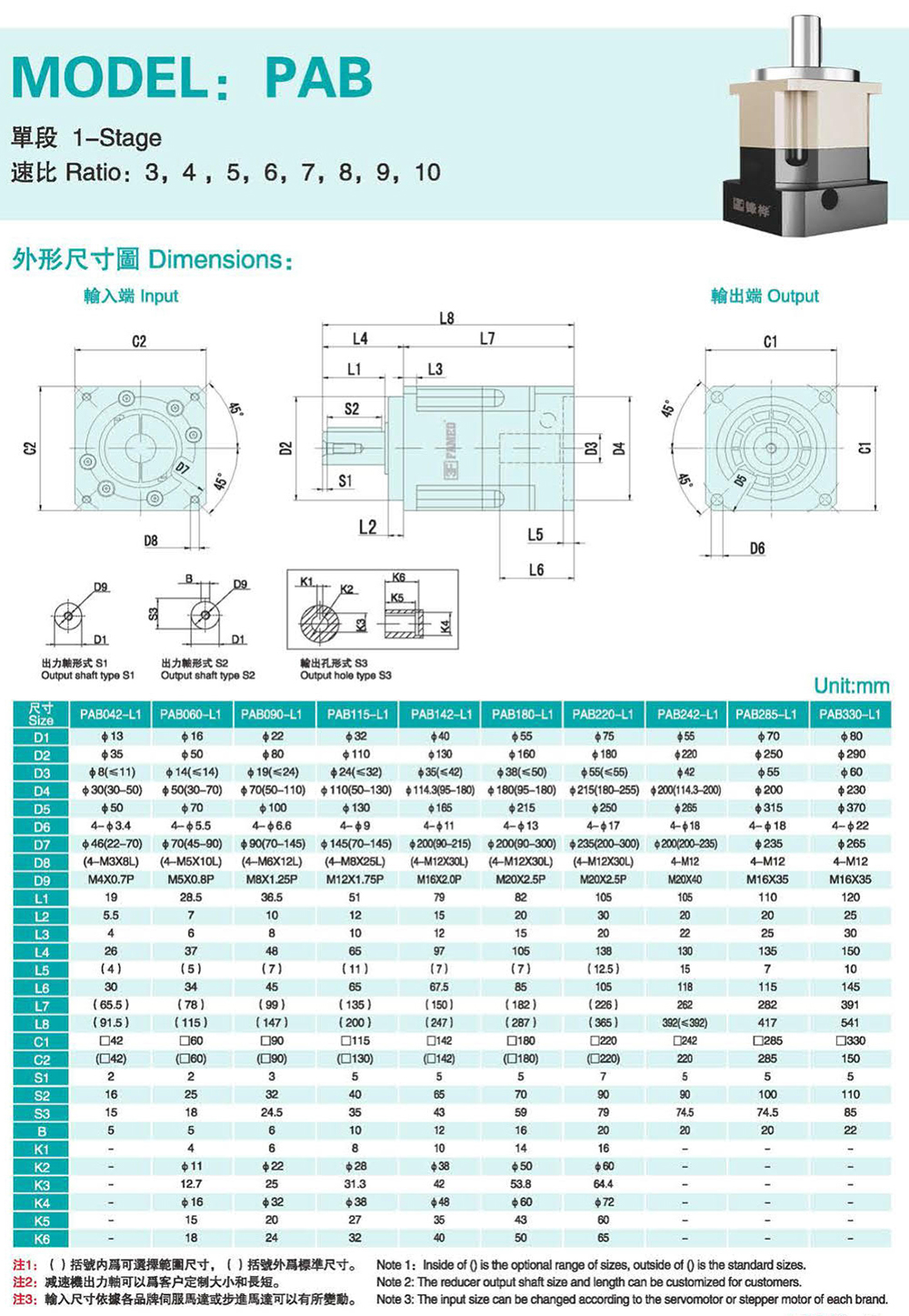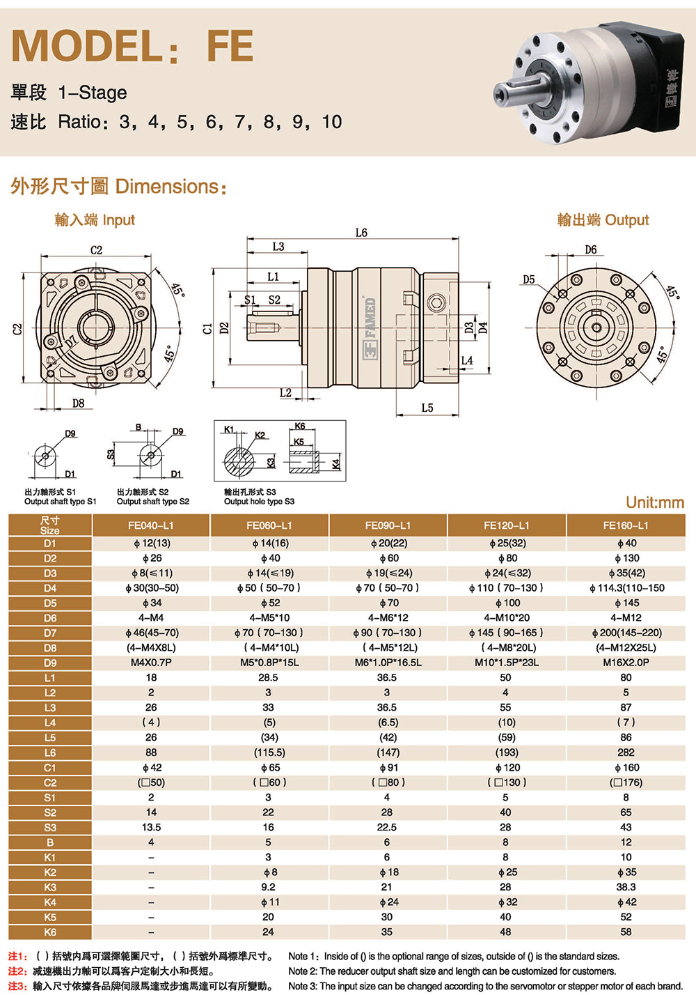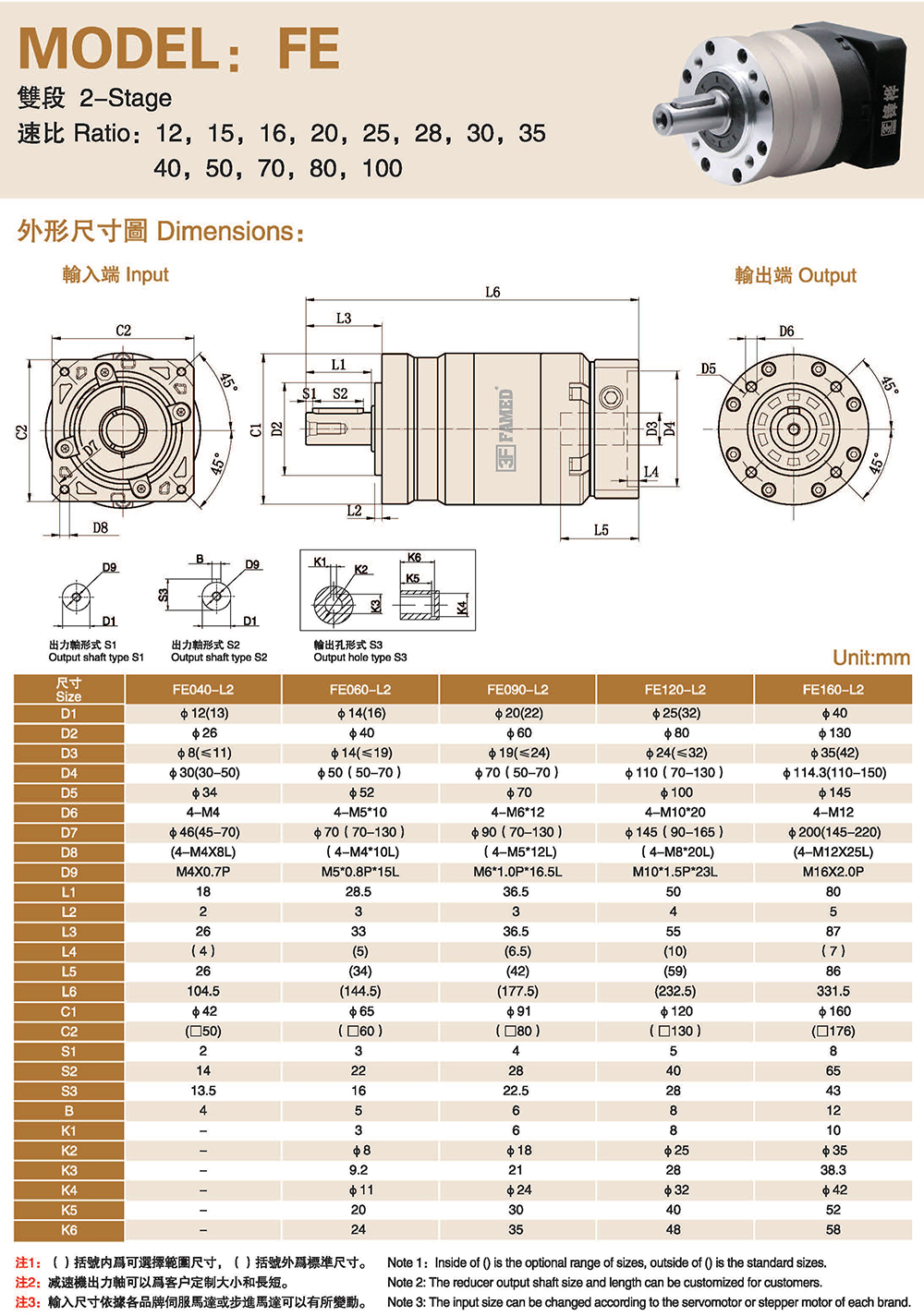 特性: 本体结构扎实、体积小,有效节省安装空问。 虽然体积小、重量轻。但具有高扭矩输出及低背隙的优异特性。 订购时请告知马达法兰及心轴尺寸。