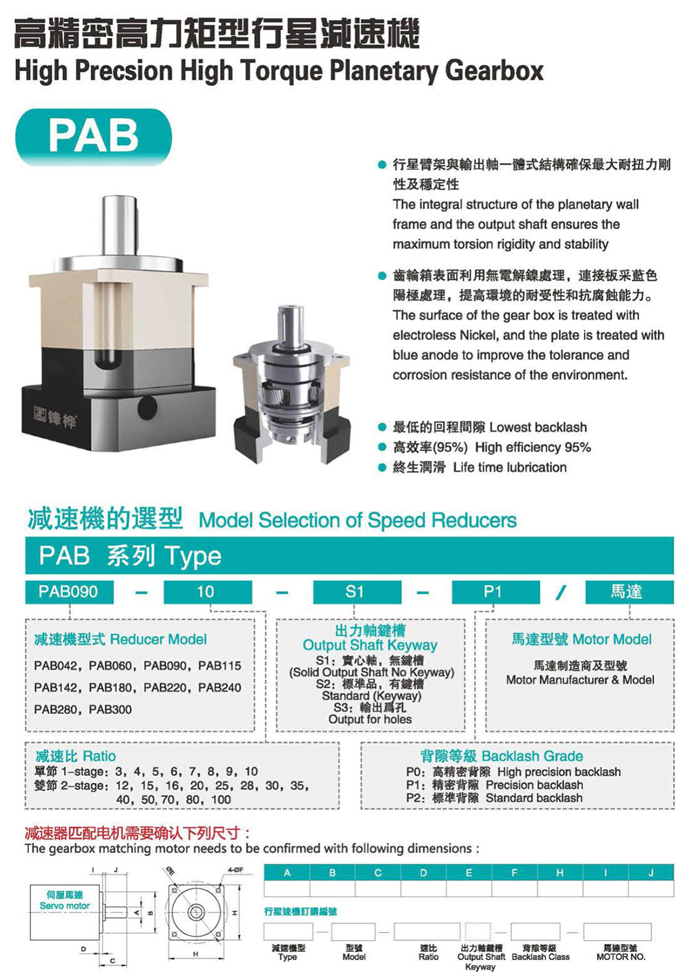1. 行星臂架与输出轴一体式结构确保耐扭力刚性及稳定性。