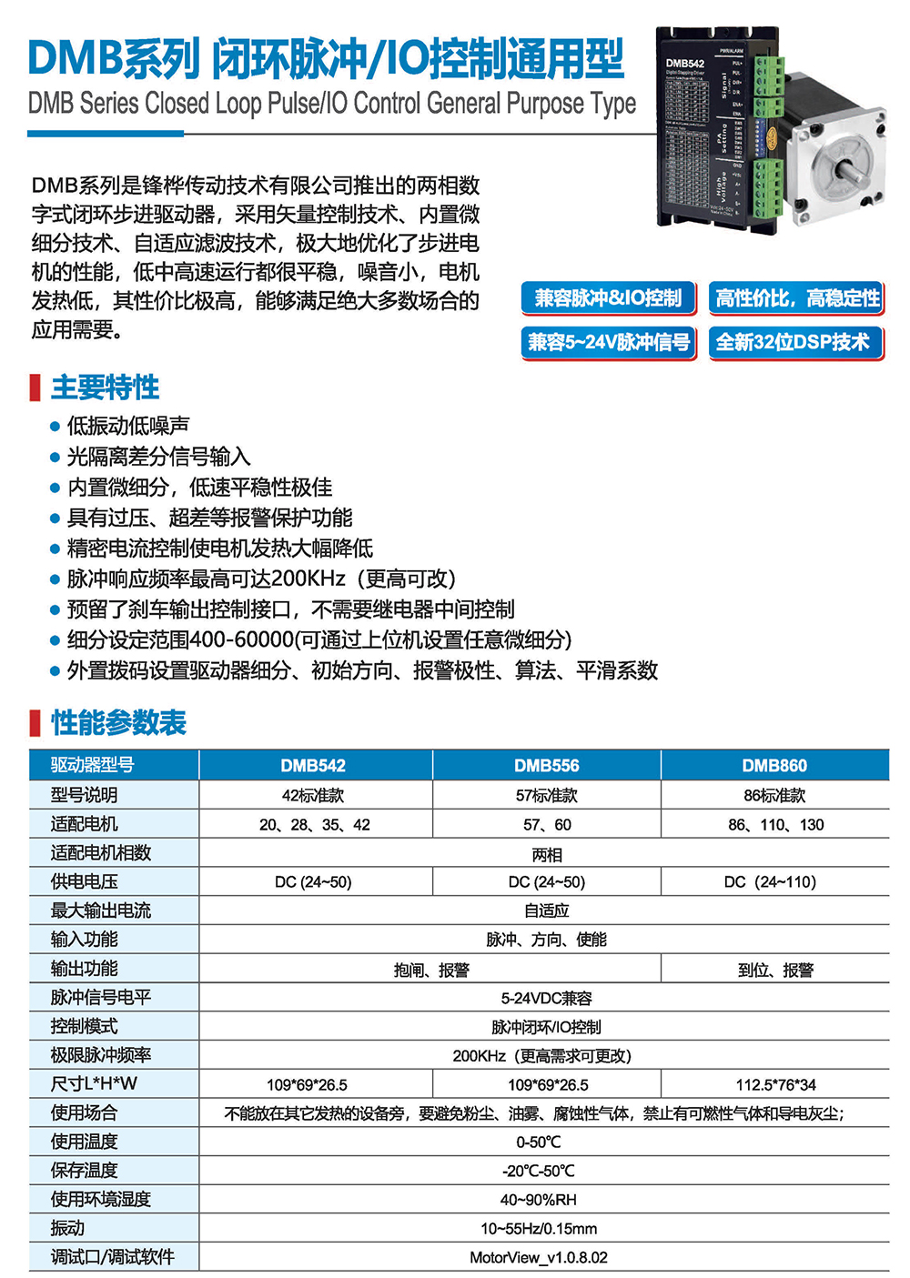 当前位置:首页 > 步进电机·交流/直流伺服电机 > 步进电机驱动器(开环+闭环) > DMB系列 闭环脉冲/IO控制通用型