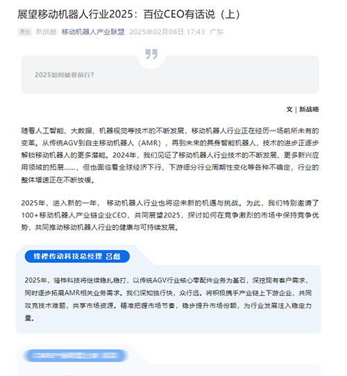 随着 2025 年的到来,移动机器人行业迎来了新的发展篇章。在科技飞速进步和市场需求持续增长的双重驱动下,这个行业正站在新的机遇与挑战的十字路口。 锋桦传动科技作为其中一员,将与行业同仁共同探讨竞争优…