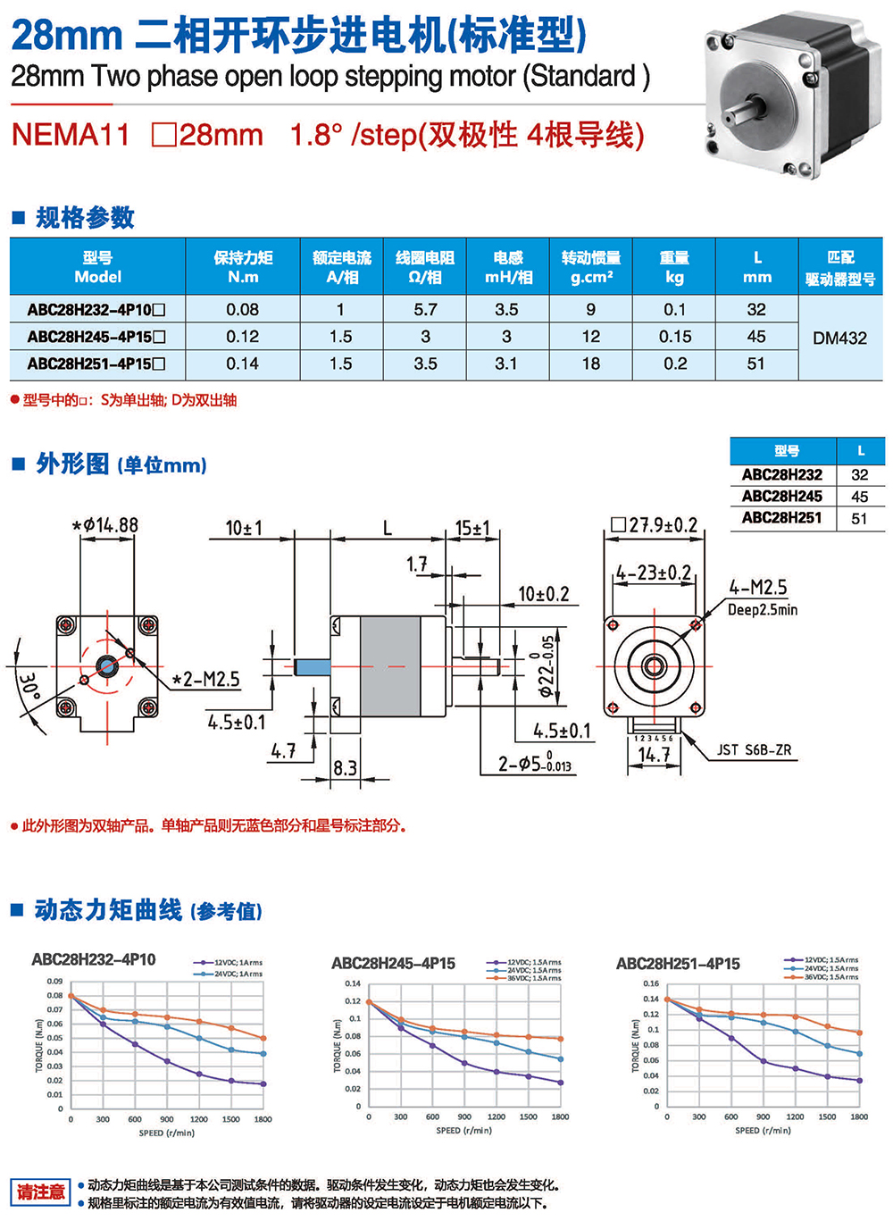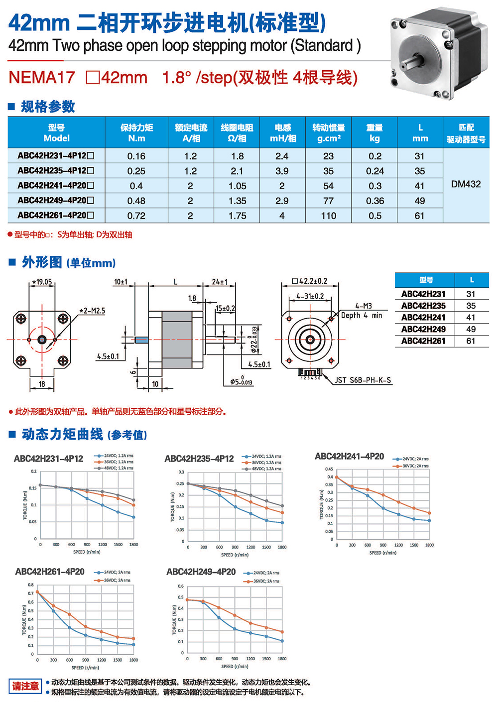 步进电机又称为脉冲电动机或阶跃电动机,它根据输入的脉冲信号,每改变一次励磁状态就前进一定的角度,励磁状态不变时贝保持一定位置静止[1]。由此步进电机可以将输入的脉冲信号转化为对应的角位移进行输出。通过控制输入脉冲的数量可以准确确定输出的角位移以实现定位的功能:而通过控制输入脉冲的频率可以准确控制输出的角速度而达调速的目的。因此在需要准确定位或调速控制时均可考虑使用步进电机。20世纪60年代后期,各种实用性步进电机应运而生,近40年的发展很快。步进电机已经能与直流电机、异步电机,以及同步电机并列,成为电动机的一种基本类型。我国自80年代中期以来,对步进电机的精确模型做了大量研究工作,各种混合式步进电机及驱动器已经在各行业得到广泛应用。步进电机有反应式(VR型)、永磁式(PM型)、混合式(HB型)三种类型。混合式步进电机综合了前两种形式步进电机的优点,目前国内的装备制造业中所用步进电机基本都是混合式步进电机。所以以下介绍的步进电机均指“混合式步进电机”