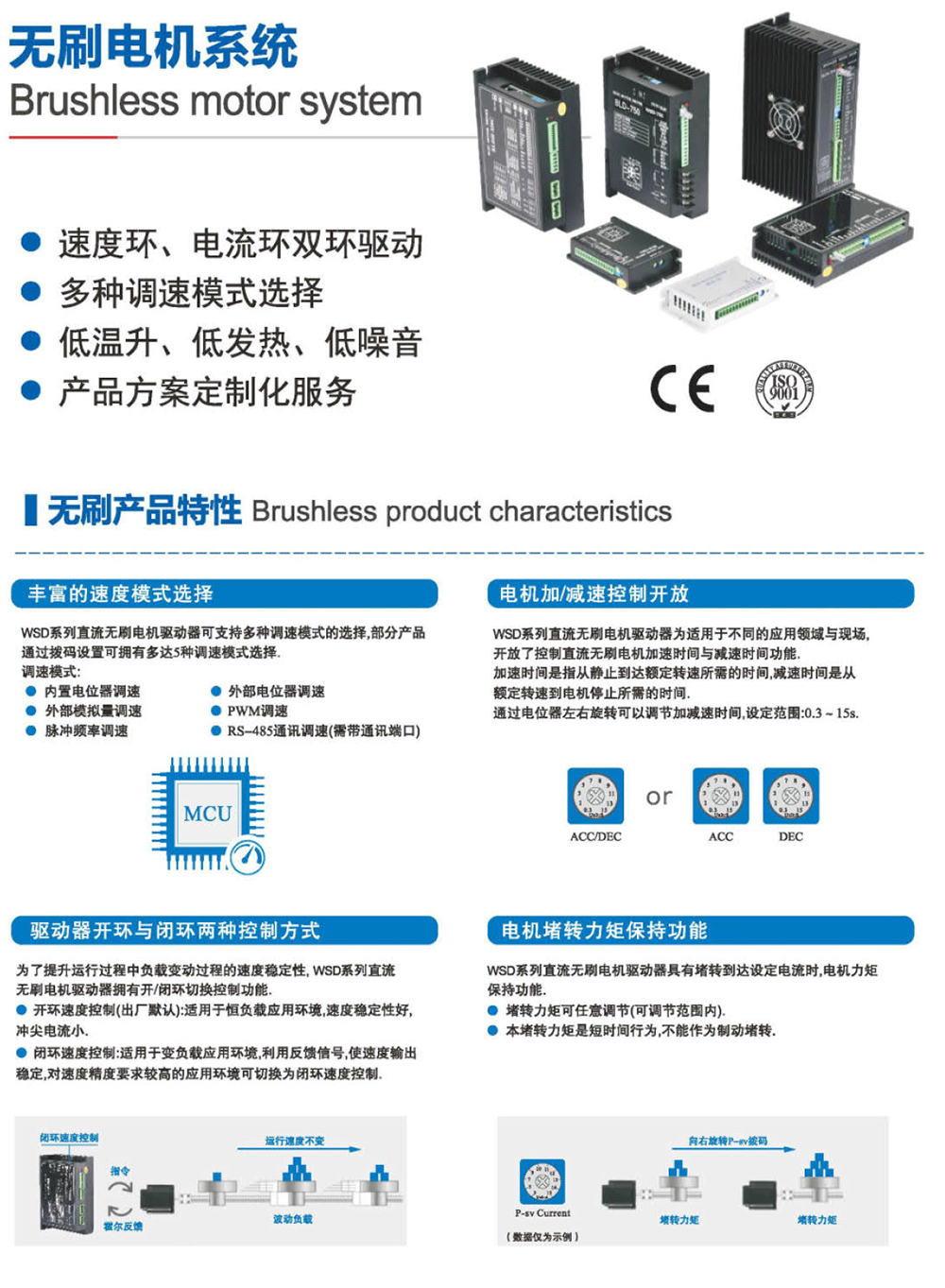 ●速度环、电流环双环驱动 ●多种调速模式选择 ●低温升、低发热、低噪音 ●产品方案定制化服务