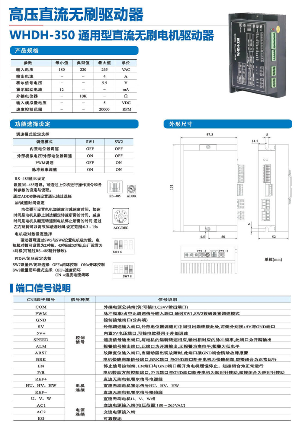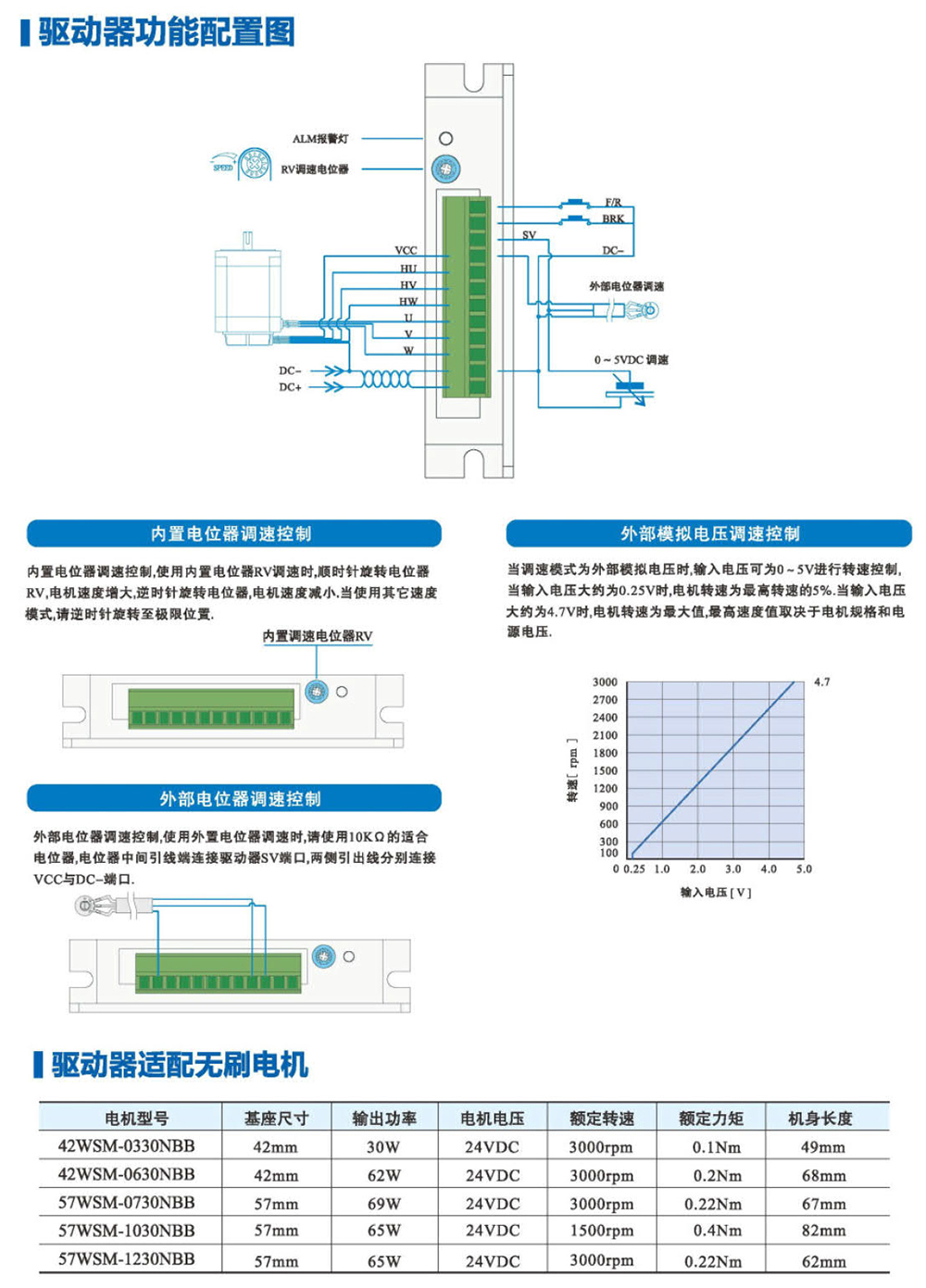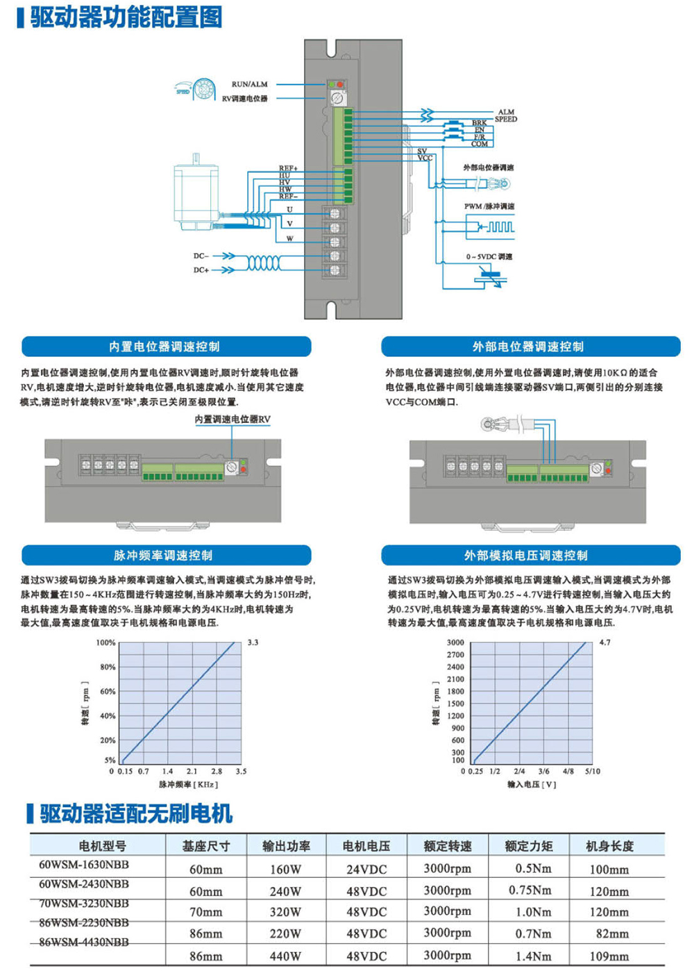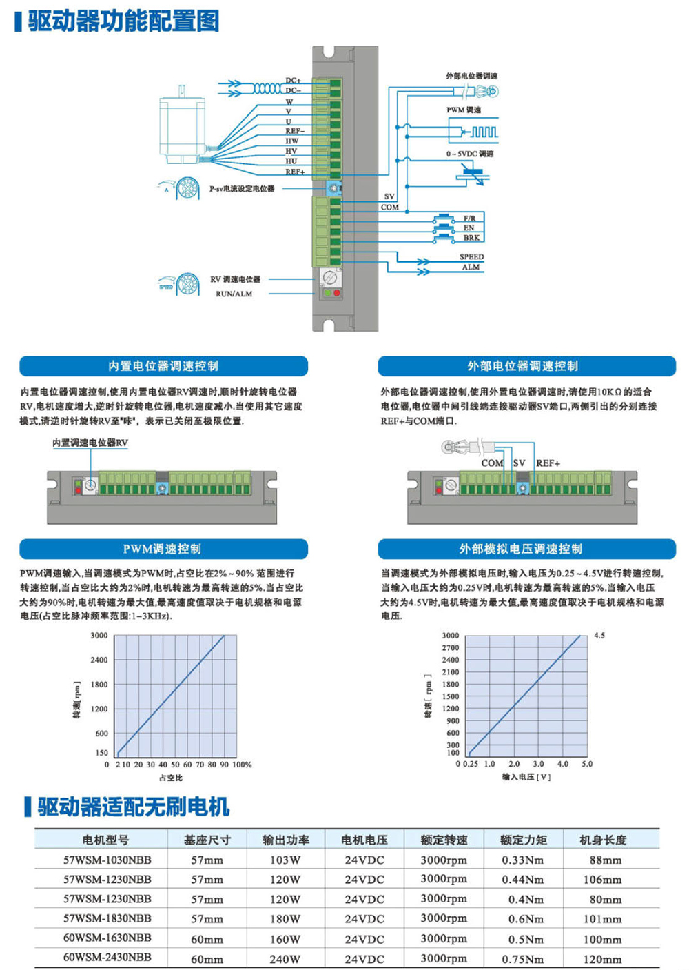 ●可驱动小于70W无刷电机 ●拥有刹车、正反转切换等功能 ●拥有过温、过流、霍尔错误保护功能 ●可使用内部电位器调速 ●可使用外部电位器调速 ●可使用外部模拟电压调速 ●尺寸小巧,易于安装