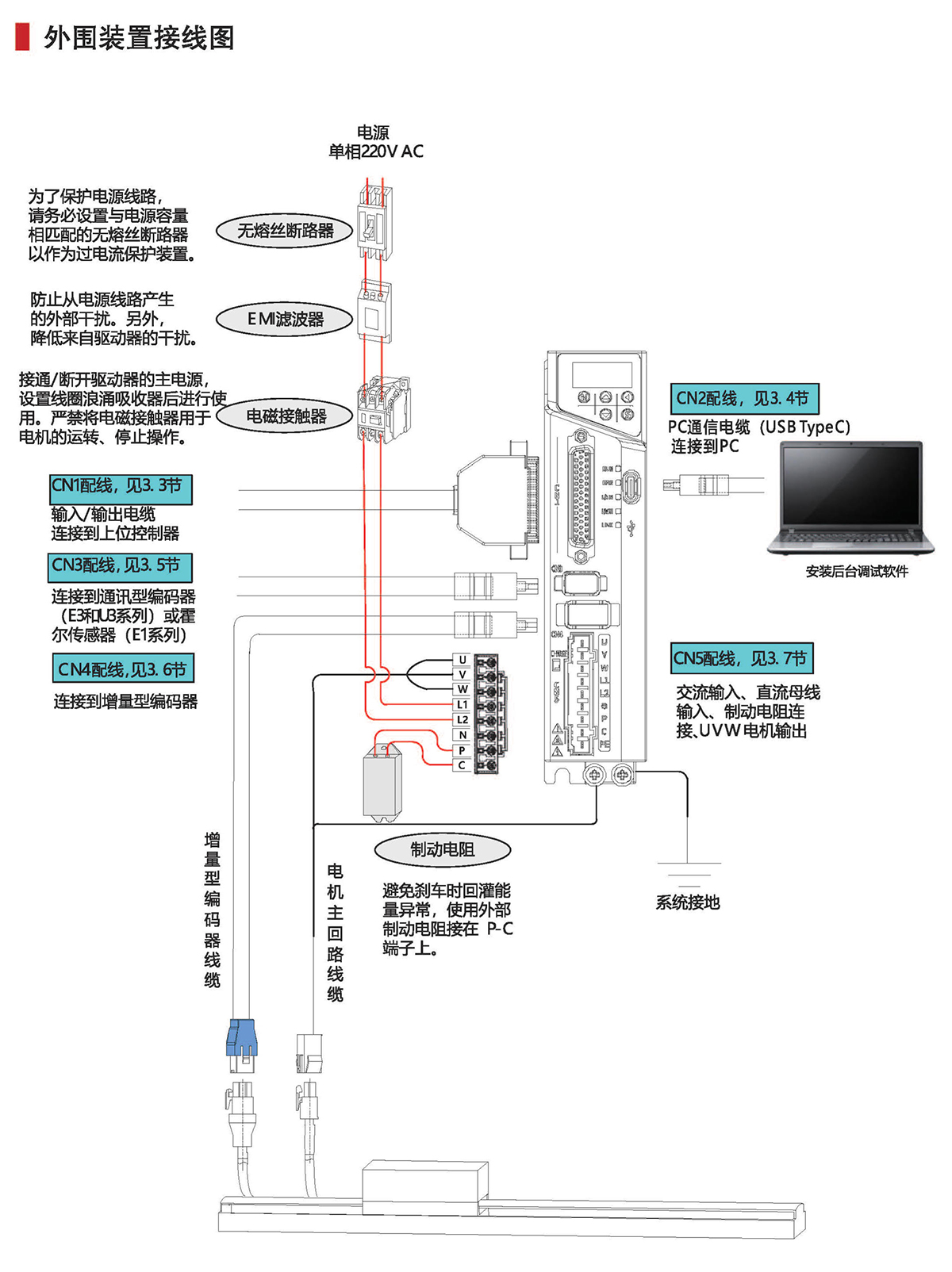 ③额定功率:S:AC220VT:AC380D:单相AC220V/3相AC220V3R0:3.0A;4R5:4.5A;6R0:6.0A;